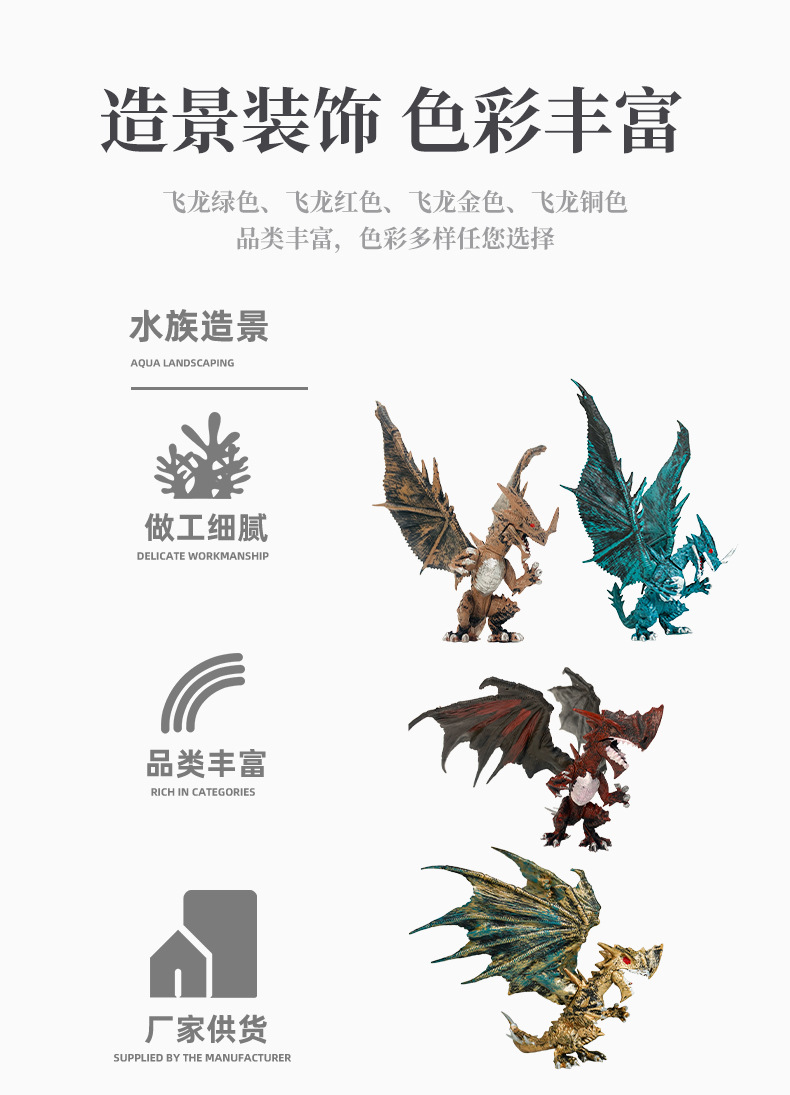 Modelo de dinosaurio monstruoso transfronterizo, decoración de acuario, adorno realista de dragón volador rojo, juguete de dibujos animados, nuevo regalo
