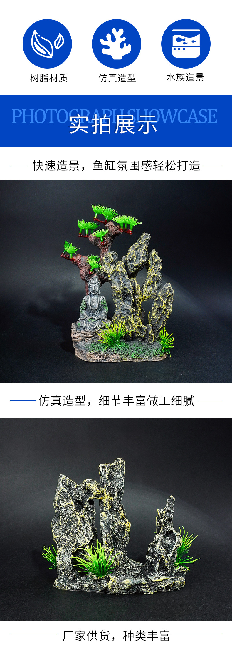 Buda árbol de rocalla resina bonsai decoración paisaje acuario rocalla decoración micro paisaje estatua de Buda Zen decoración al por mayor