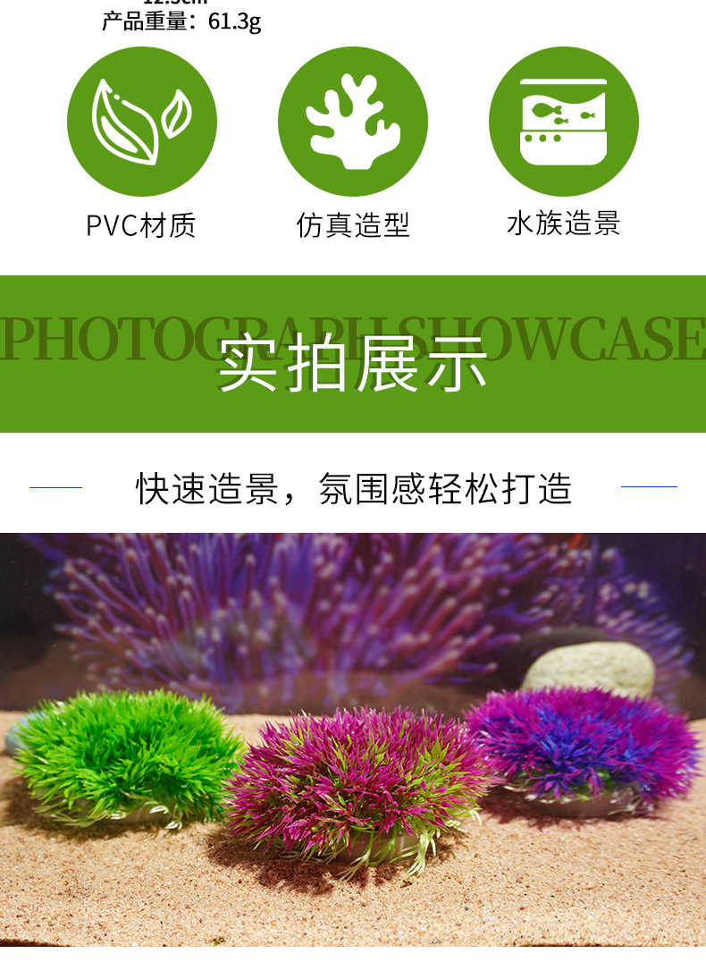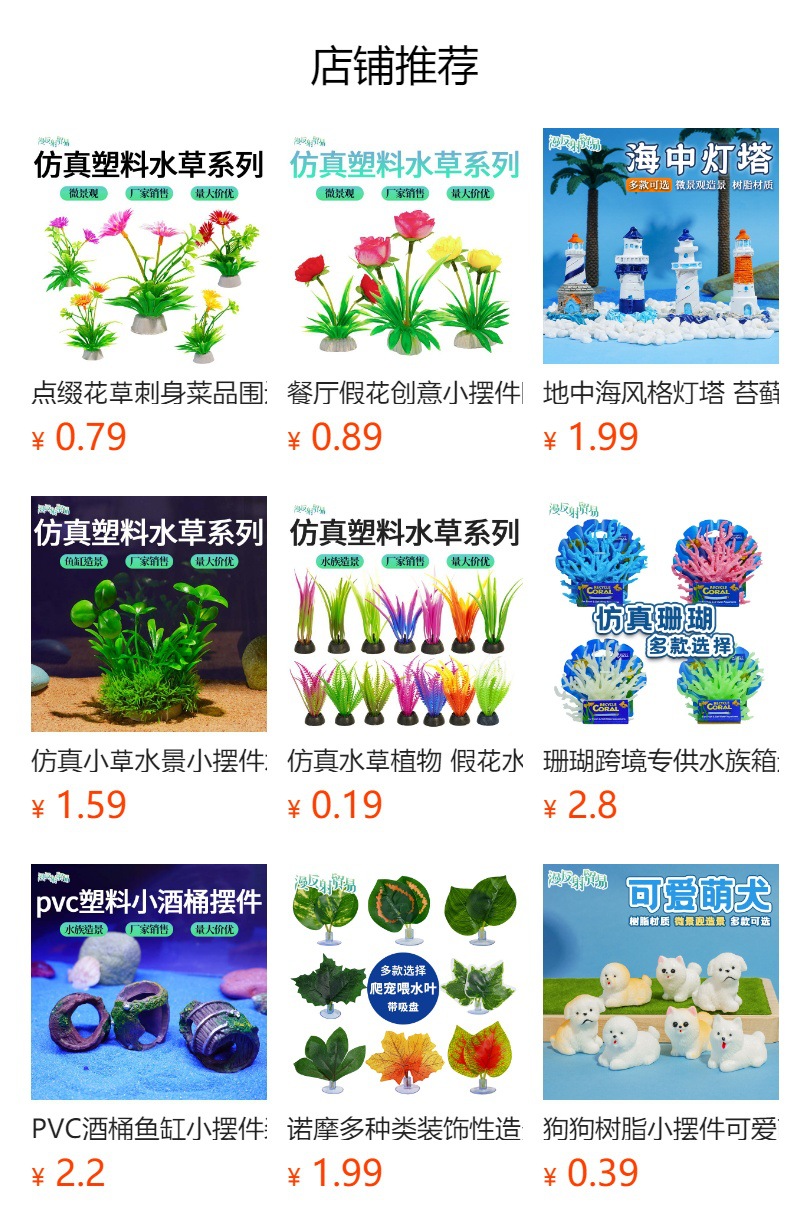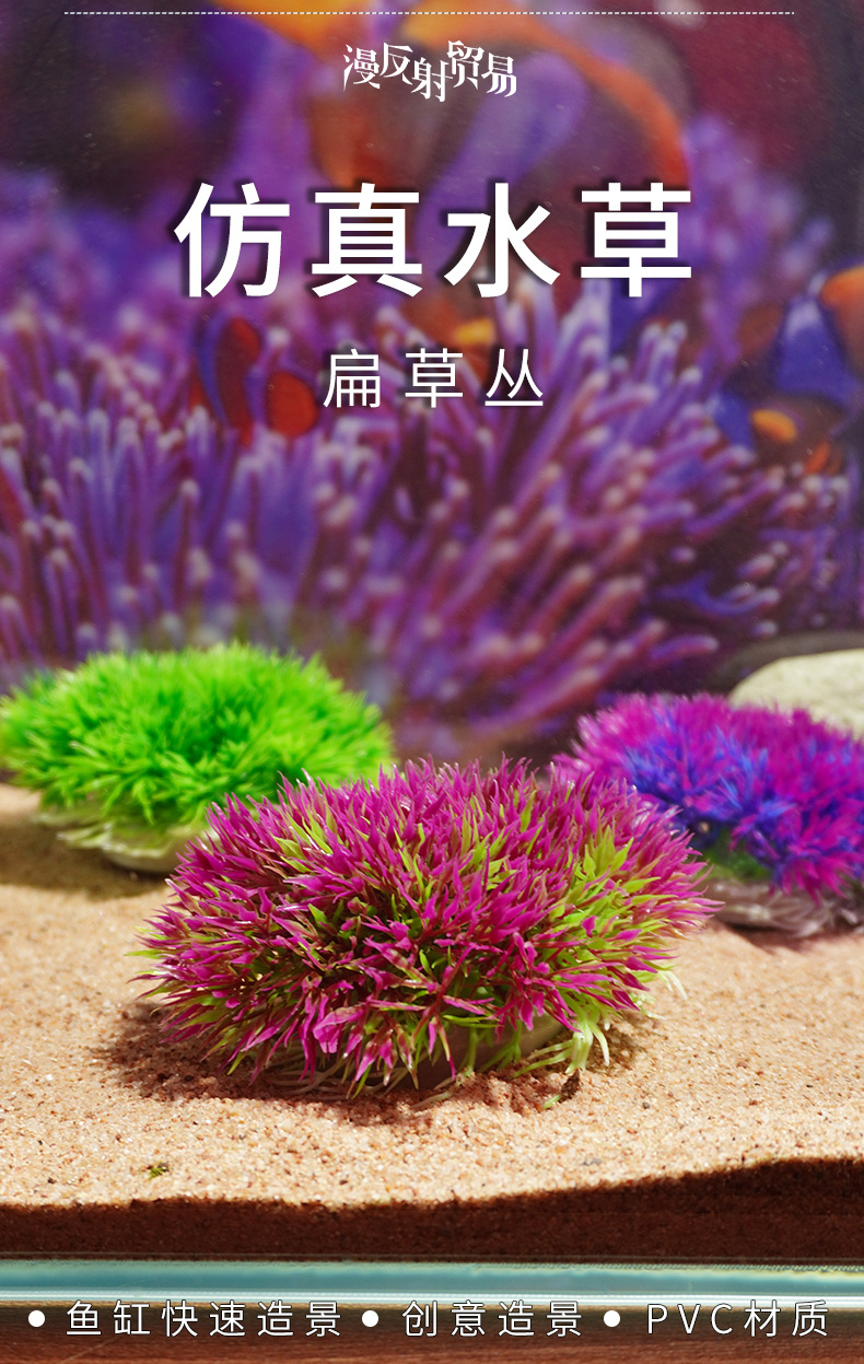 Hierba acuática simulada Hierba plana Hierba acuática falsa Fábrica Venta directa Pecera Decoración Pecera Paisaje Acuario Plástico