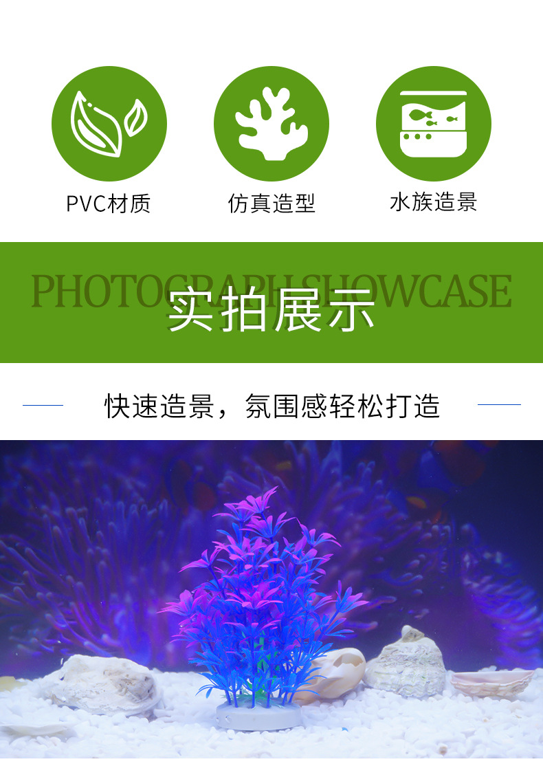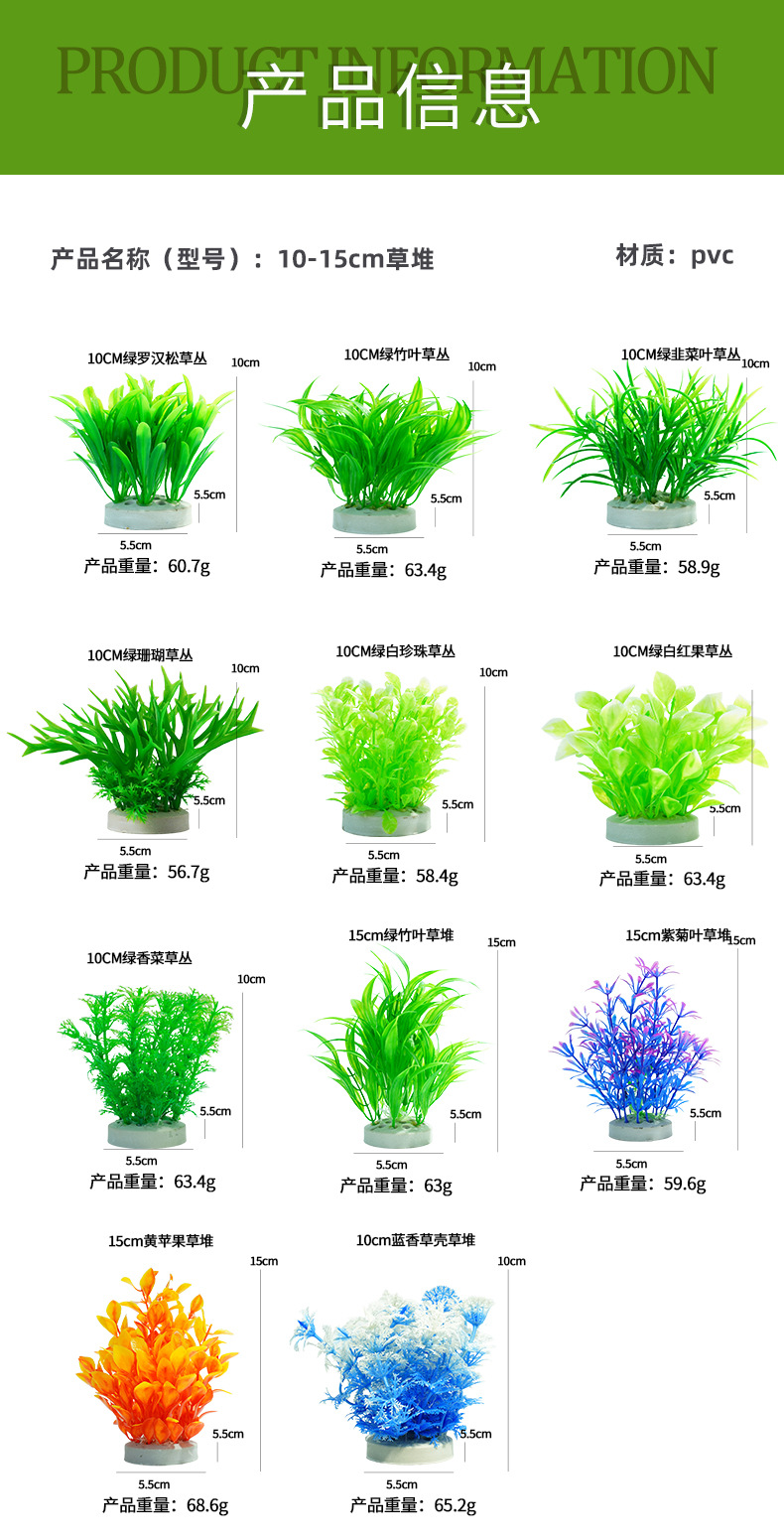 Hierba de plástico decorativa flores, plantas, peceras, paisajismo, suministros de flores falsas, plantas acuáticas simuladas al por mayor, plantas acuáticas simuladas especiales transfronterizas