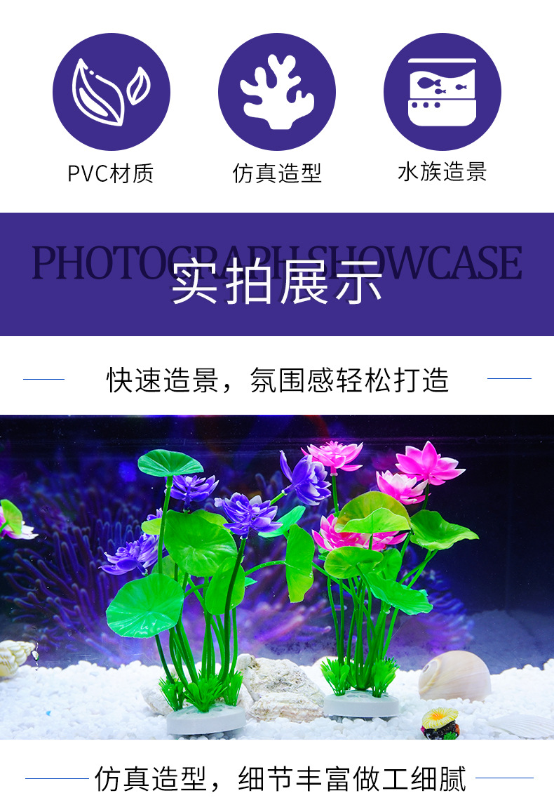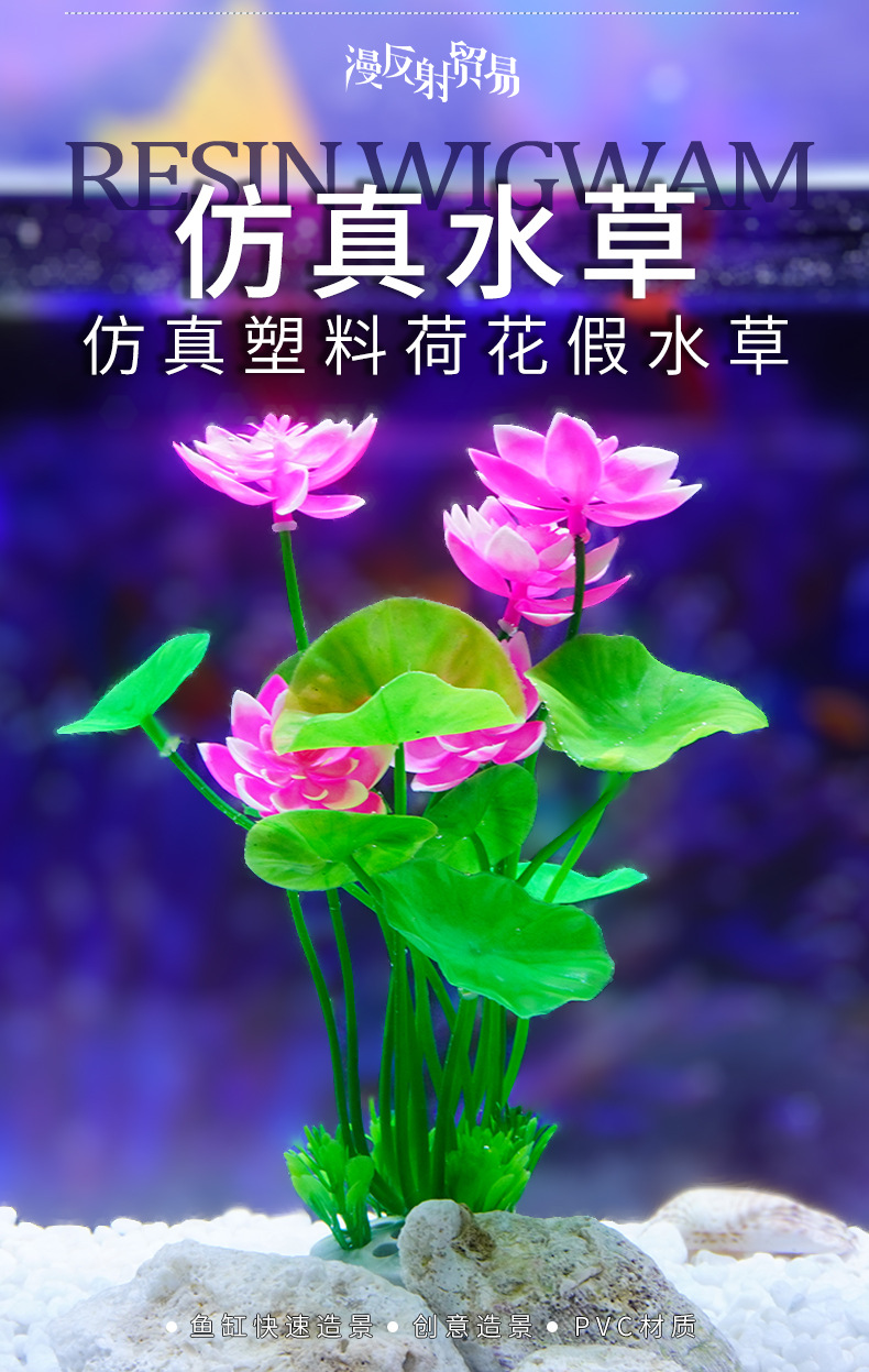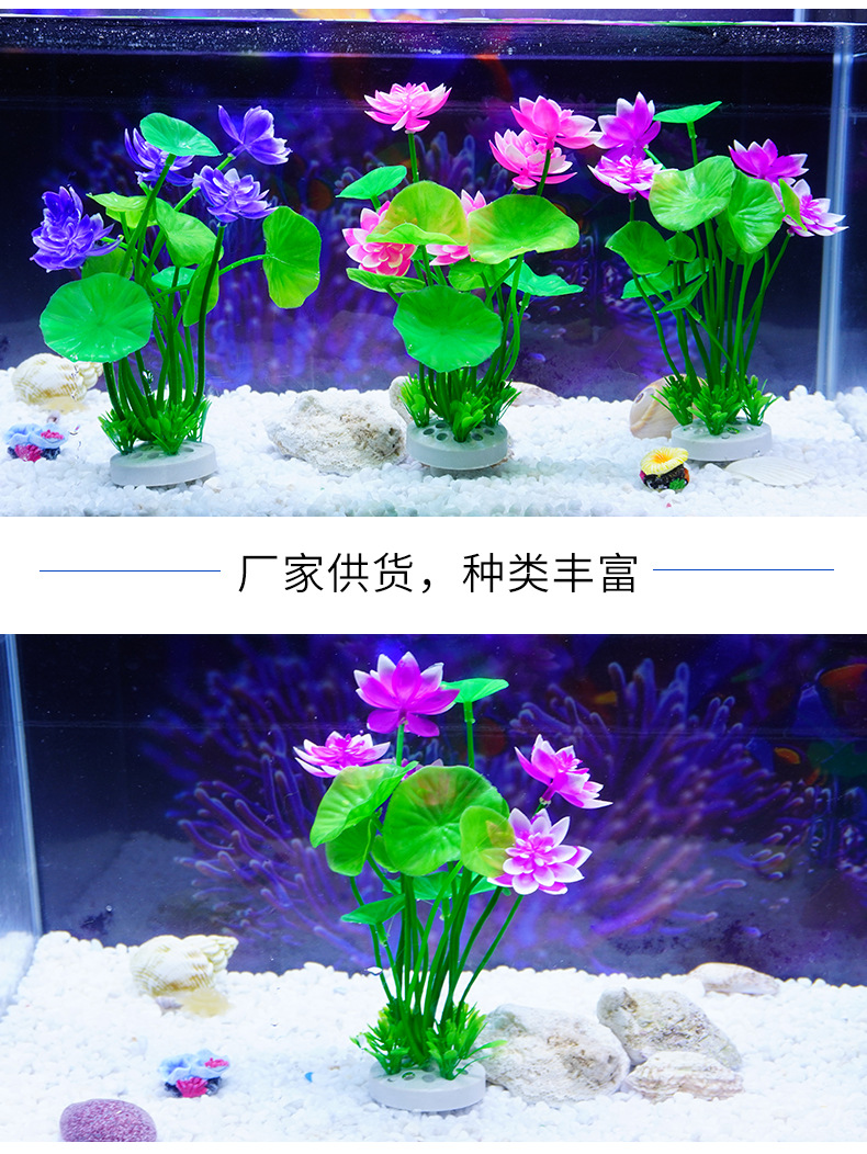 Origen Fabricante Decoración de micro paisaje Adornos Agua falsa Hierba Pecera Simulación Plástico Lotus Nenúfar al por mayor