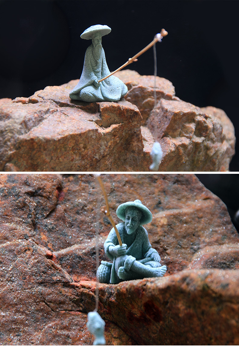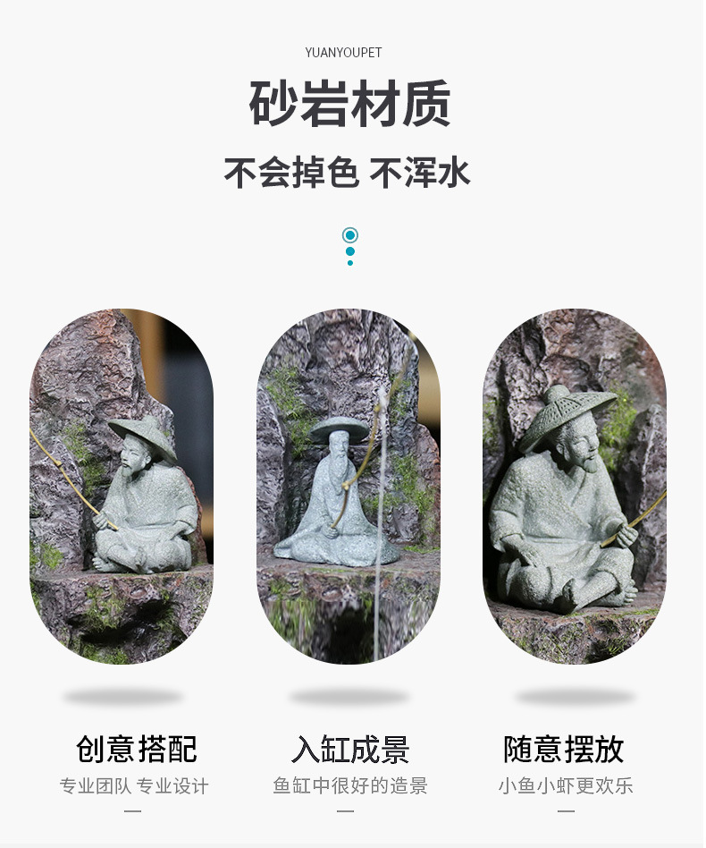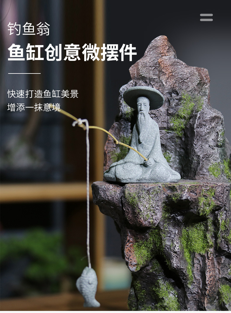 Simulación de pesca Weng pequeños adornos jardinería flores micro paisaje Jiang Taigong rocalla bonsai pescador pecera decoración paisajismo