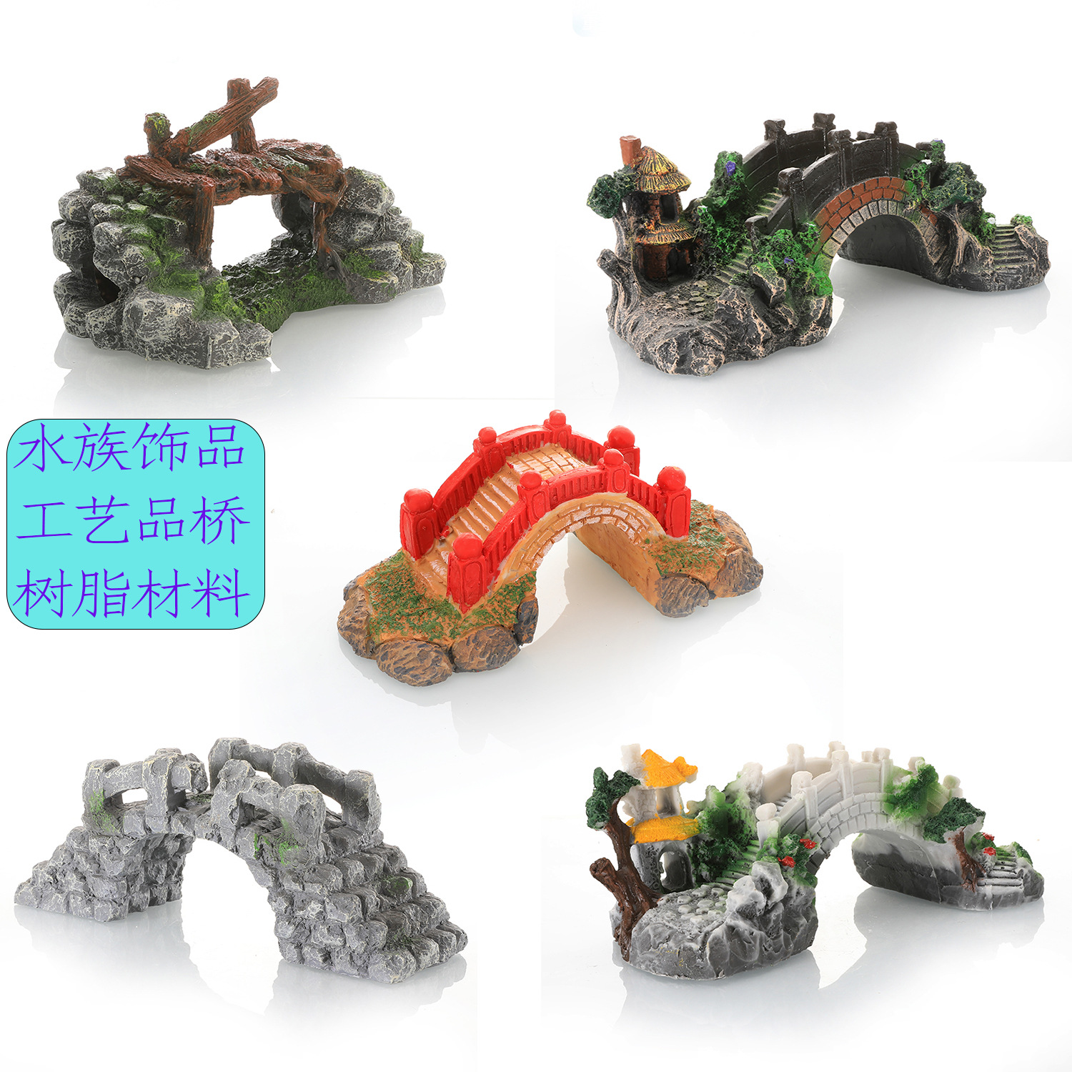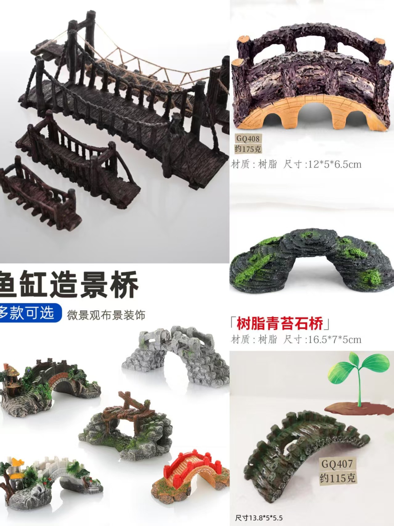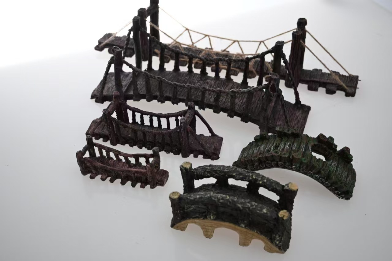 Nuevas decoraciones de paisajismo, decoración de rocalla, acuario, puente colgante creativo, accesorios de puente de madera, fábrica de puente de suministro de piedra artificial