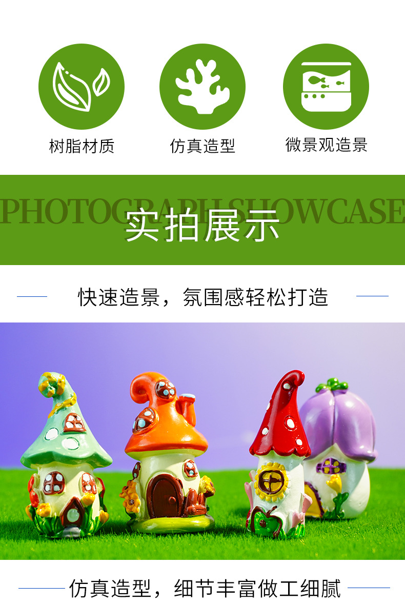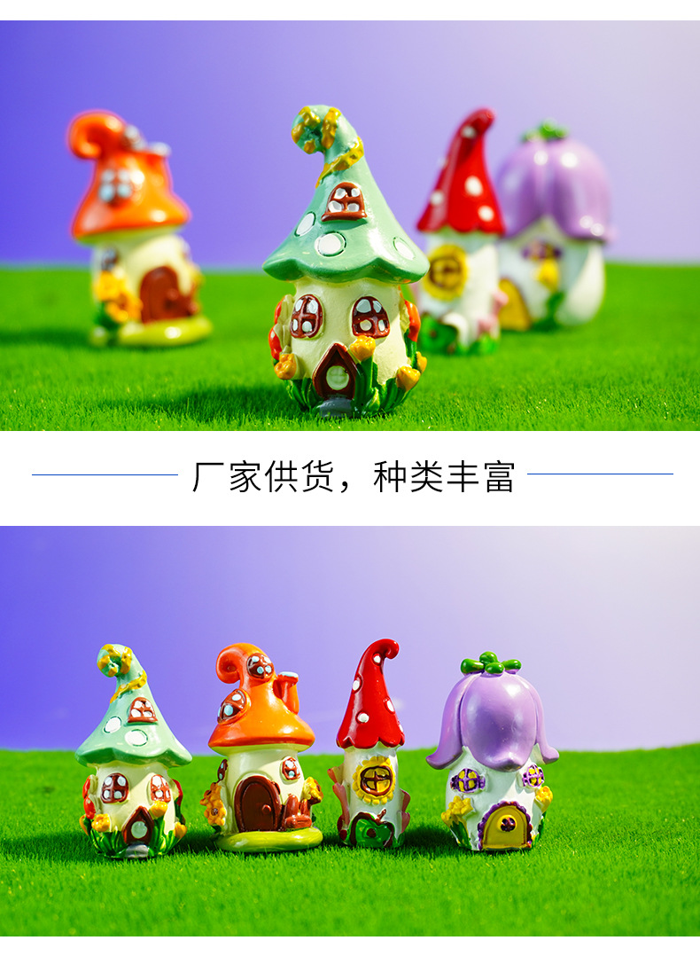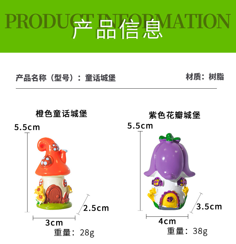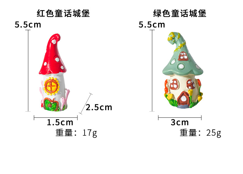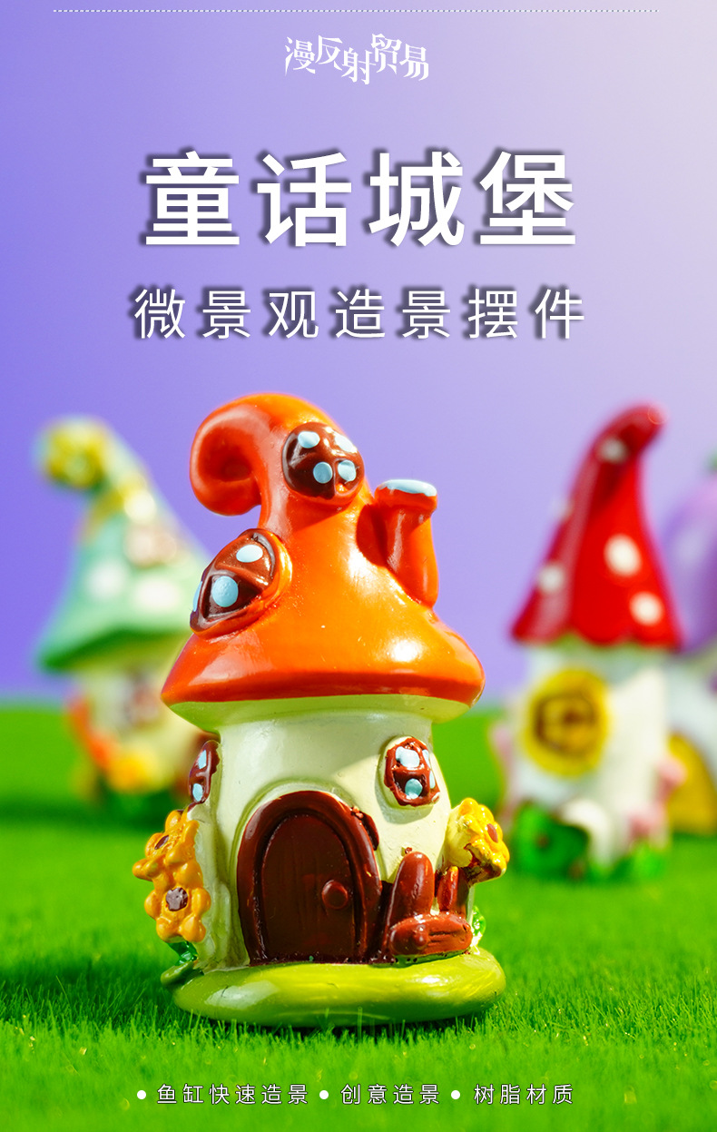 Castillo de cuento de hadas hecho decoración de micro paisaje al por mayor accesorios de decoración de pastel pecera castillo de setas de resina creativa