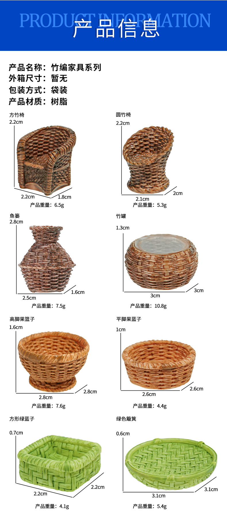 | Colores | Silla cuadrada de bambú,Silla redonda de bambú,Cesta de pescado,Tarro de bambú,Cesta de frutas de patas altas,Cesta de frutas de pie plano,Cesta verde cuadrada,Recogedor verde,Recogedor de borde recto,Recogedor de borde redondo,Cesta de frutas de pie plano verde,Cesta de bambú cuadrada,Cesta de bambú ovalada,Florero (sin jack),Recogedor elíptico,Cesta de bambú sellada |