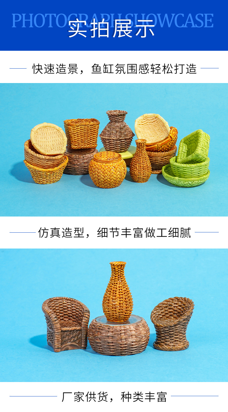 Artesanía Decoración creativa del hogar Silla de bambú, recogedor, cesta de pescado, cesta, muebles de bambú, decoración de resina, accesorios de olla de bambú