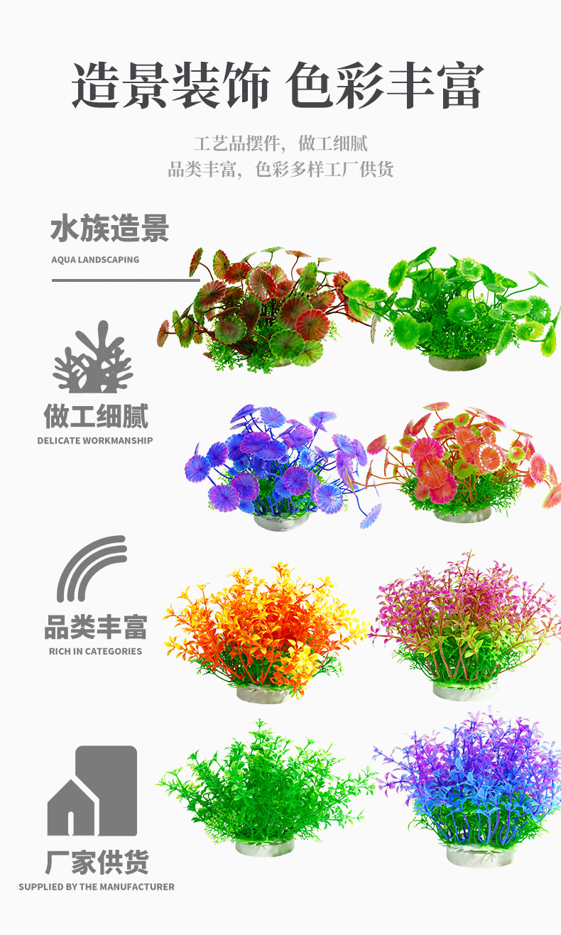Decoración de Acuarios Transfronteriza, Plantas Acuáticas Artificiales, Plantas Acuáticas Falsas para Acuarios, Decoración de Mesas de Arena, Adornos de Flores de Plástico