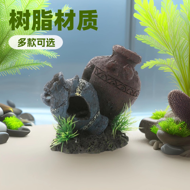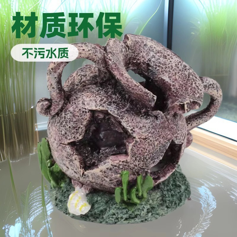 Decoración de paisajismo de pecera vintage olla de barro rota decoración de acuario pescado y camarones poner huevos, jugar y evitar la fábrica de mascotas