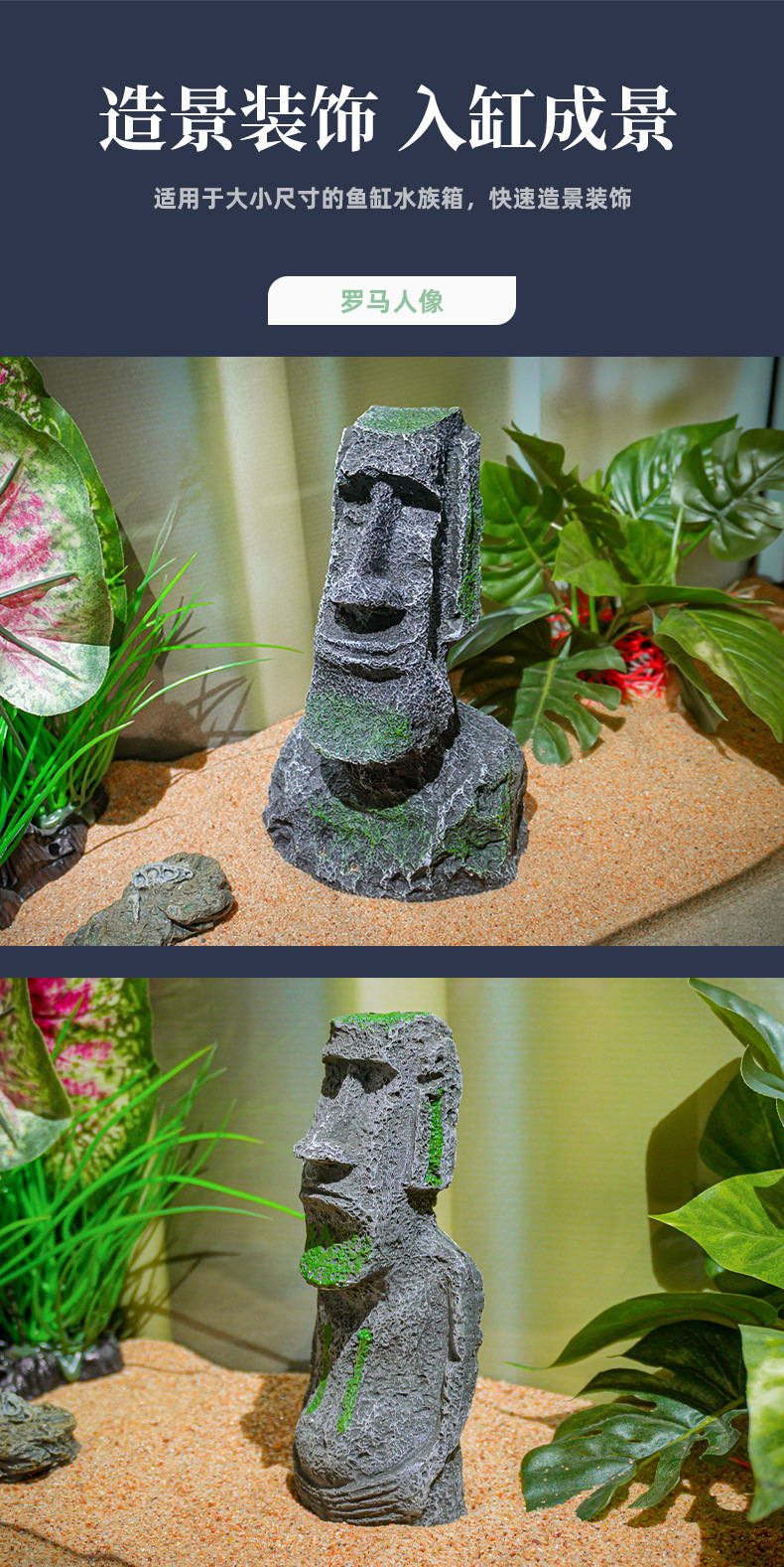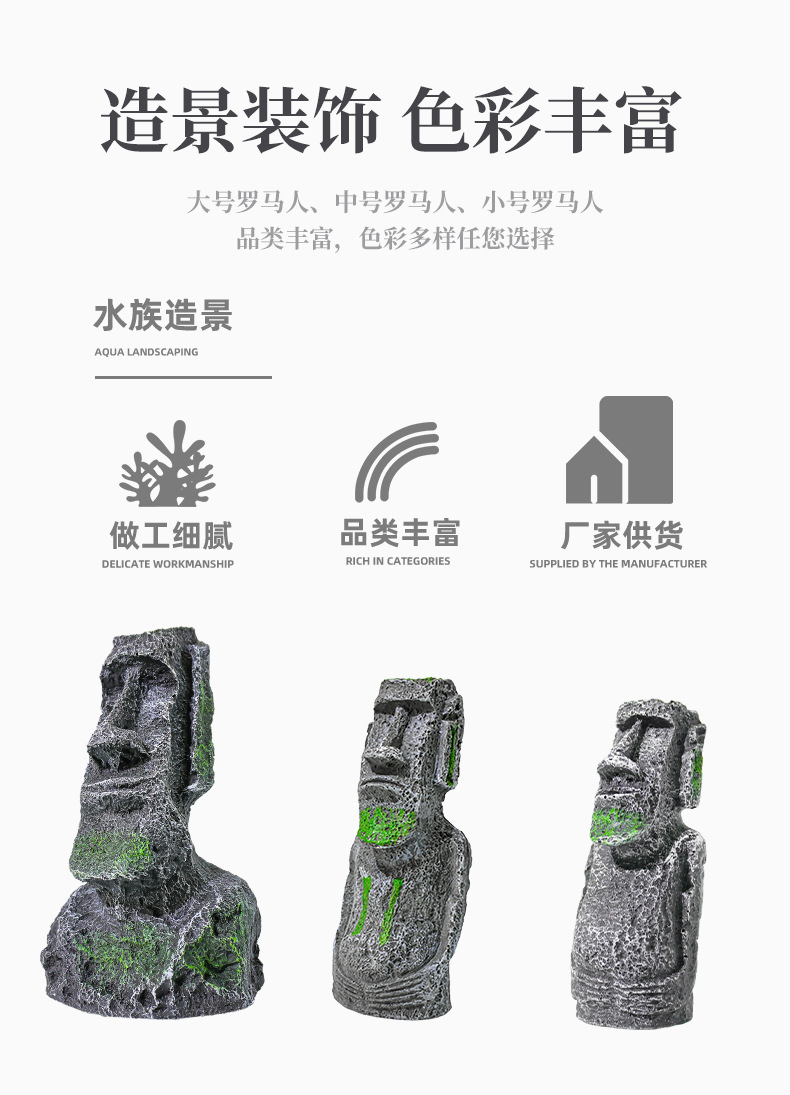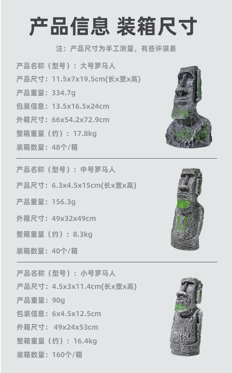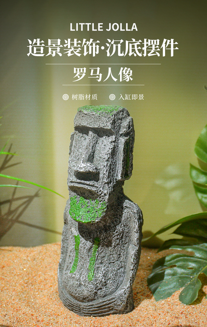 Nueva estatua de piedra de la Isla de Pascua, popular decoración artesanal para acuarios, decoración para reptiles, retrato de estilo romano antiguo