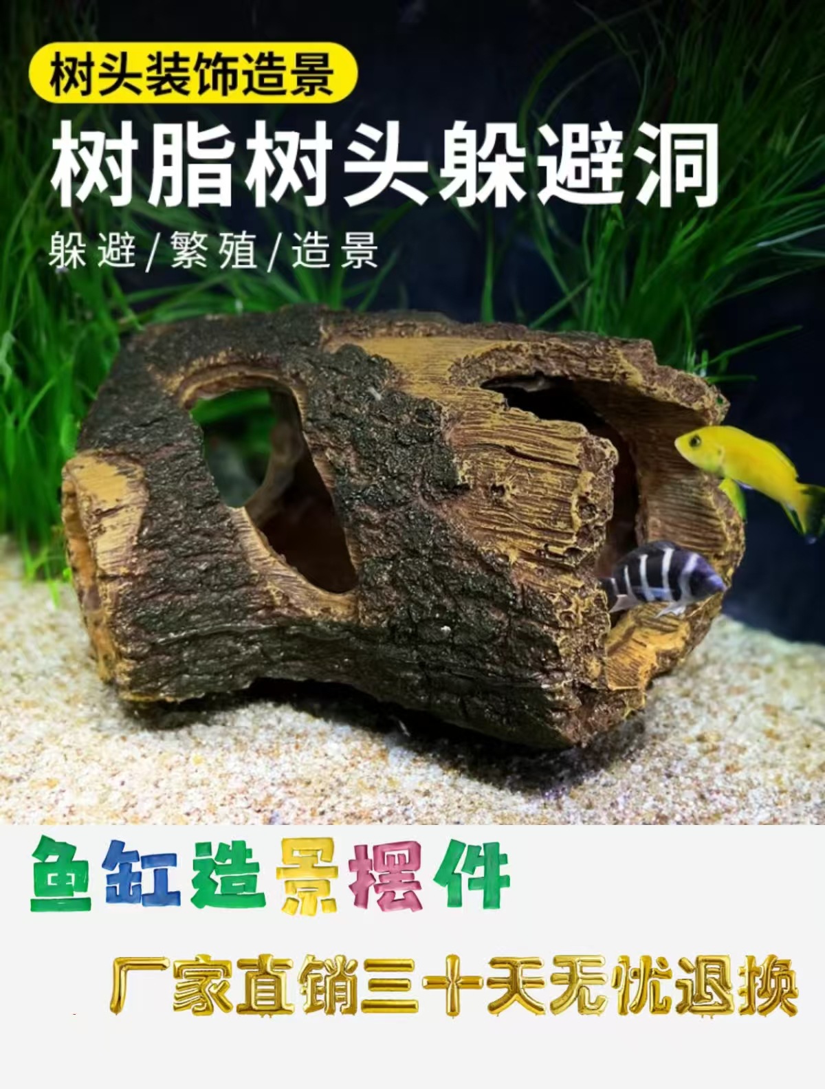 Escenografía de peceras, cabeza de árbol, escondite, decoración, decoración, resina, hundido, agujero de árbol, camarón de madera muerta, fábrica de casa
