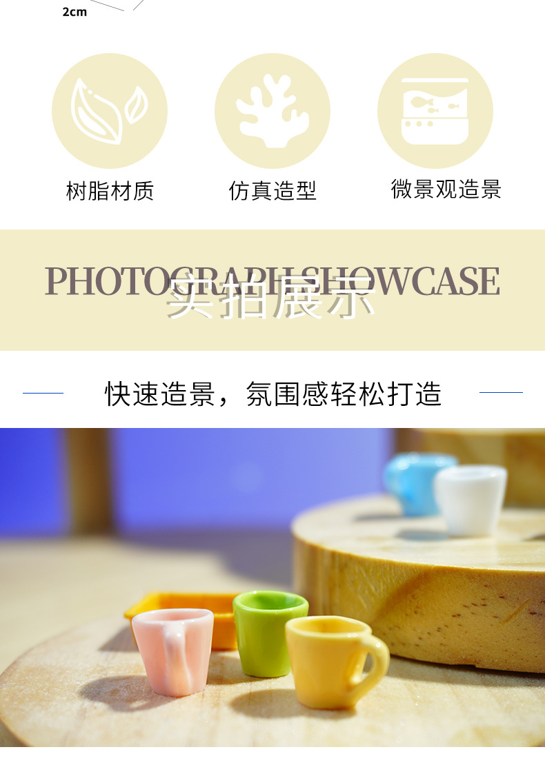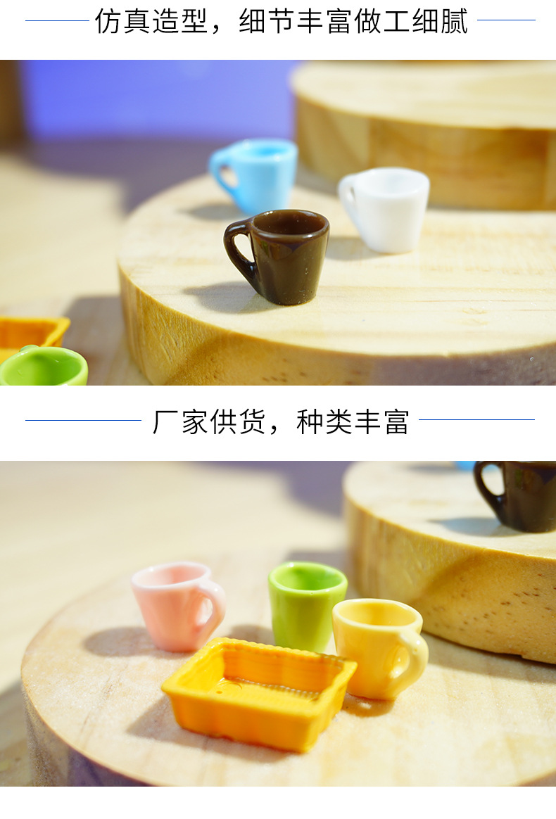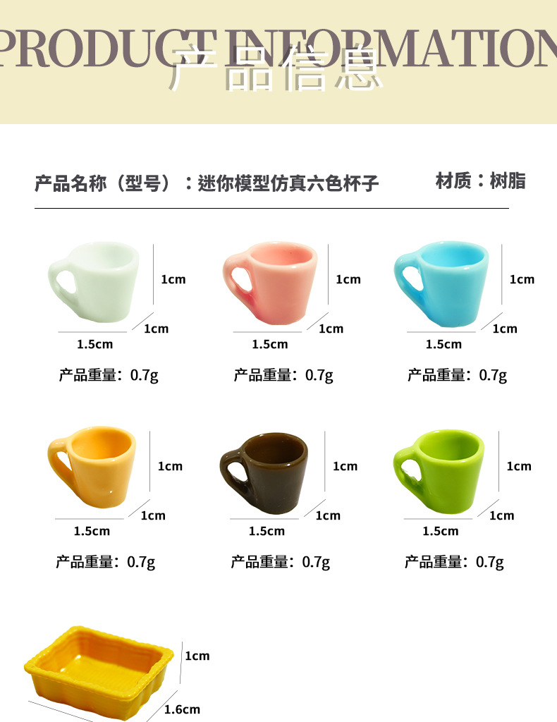 Mini modelo de simulación de mini modelo de mini decoración de mini decoración de paisaje taza de seis colores plato de resina