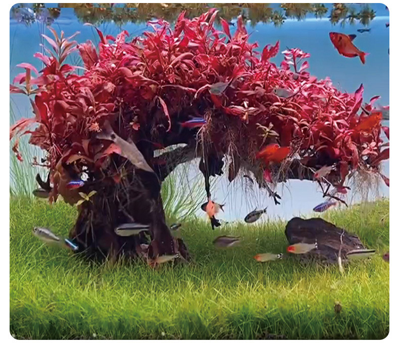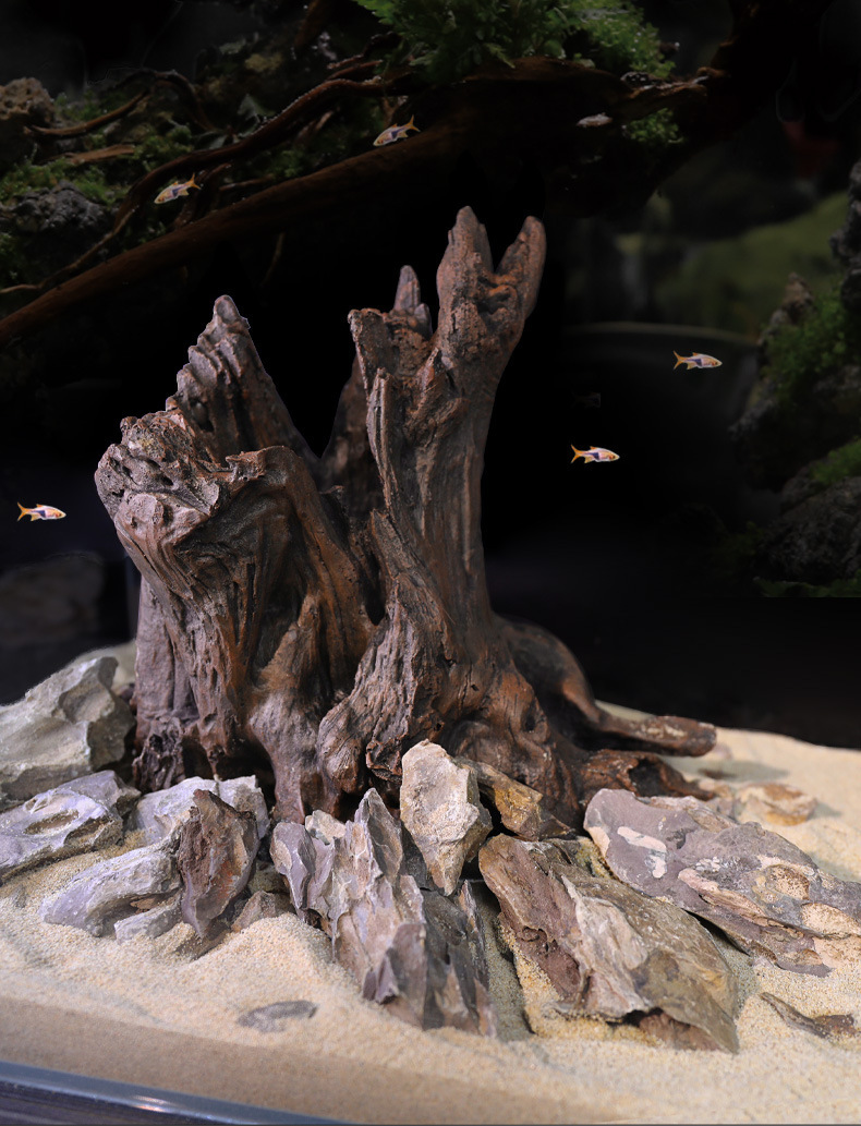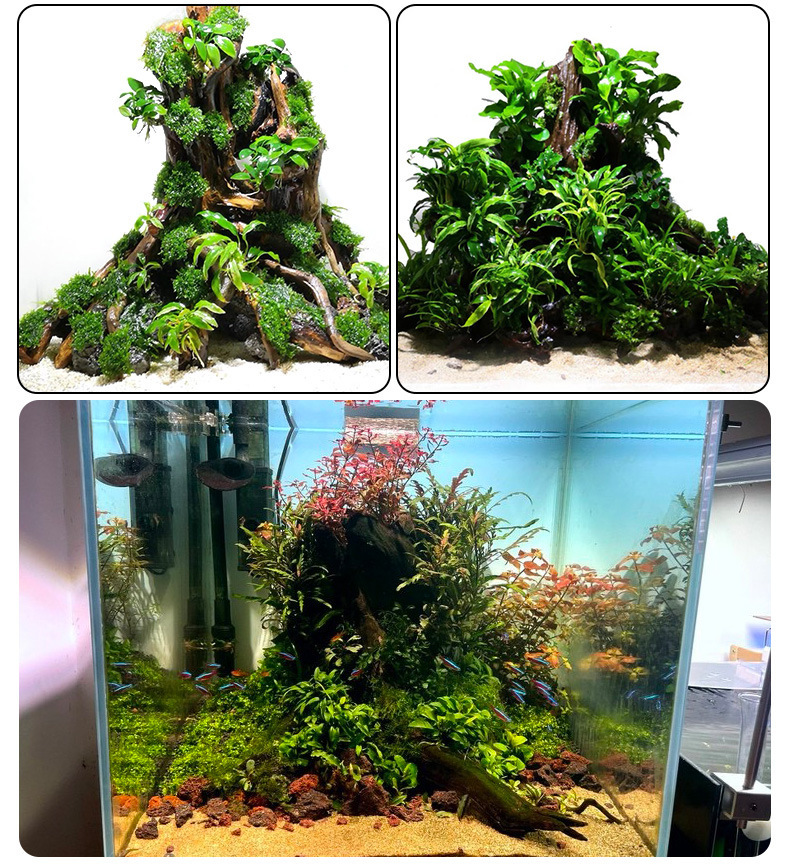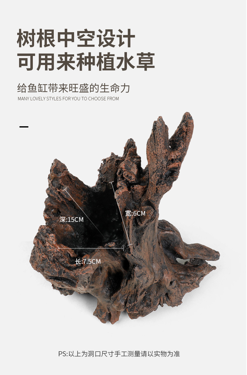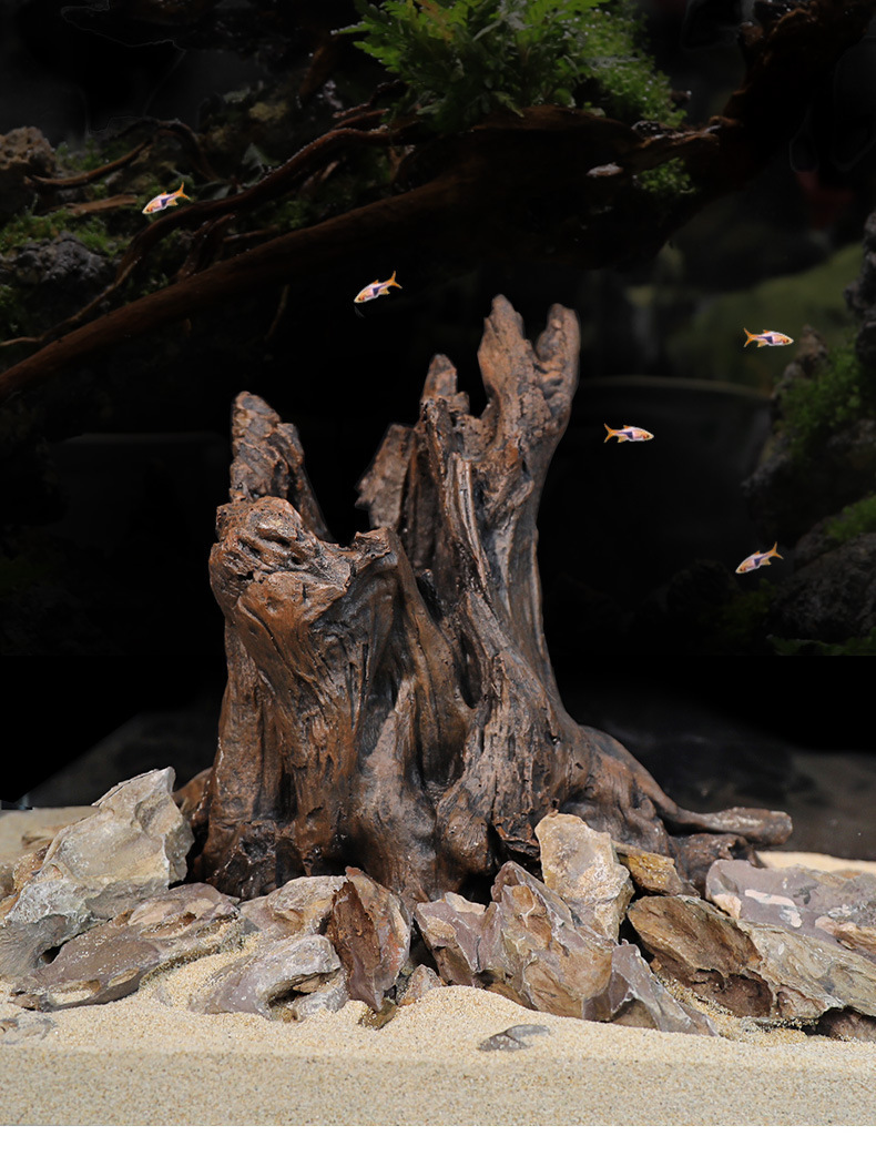 Pecera simulación teca púrpura, esqueleto de árbol de la vida, tocones de madera hundida, paisajismo, raíz de rododendro, paisaje acuático, casa de refugio, cuenca de paja