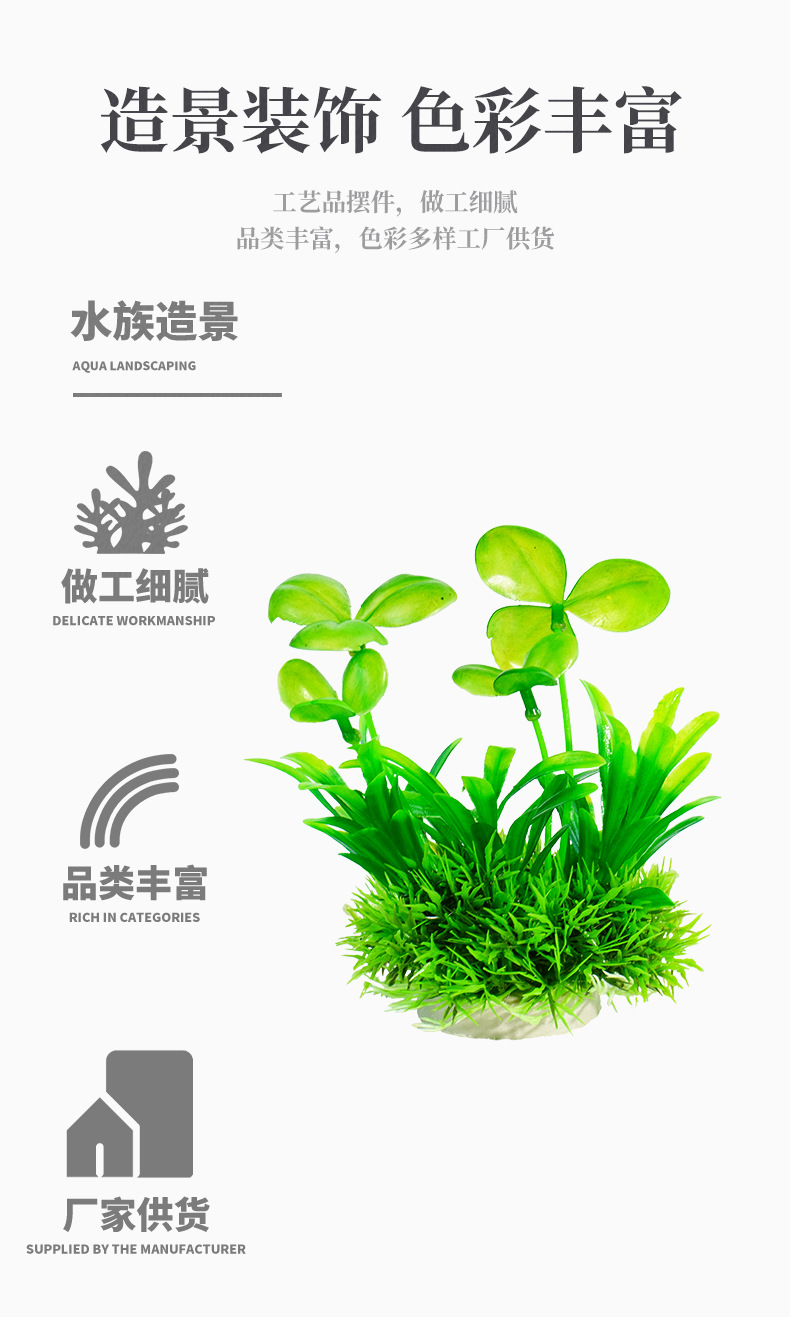 Pecera paisajismo plástico hierba de agua hierba falsa planta de simulación de decoración hierba pequeña escena de agua pequeña decoración suministros de acuario al por mayor