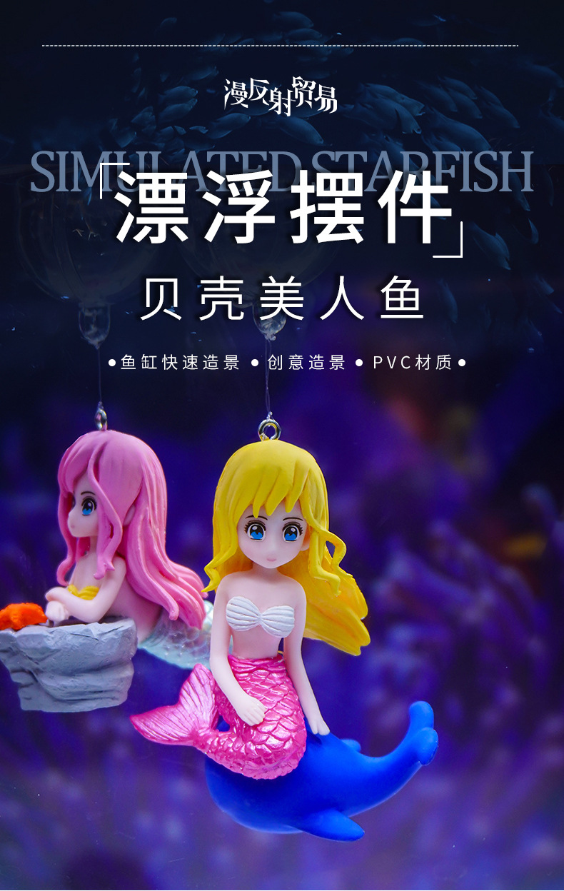 Micro paisaje decoración de dibujos animados sirena pecera paisaje colgante marino Shell princesa flotante bola decoración del acuario