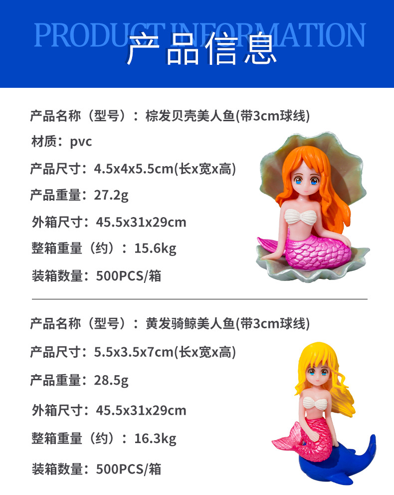 | Especificaciones | Pelo amarillo sirena princesa + bola + línea,Princesa sirena de pelo marrón + bola + hilo,Pelo rojo sirena princesa + bola + línea,Princesa sirena Rosa + bola + hilo |