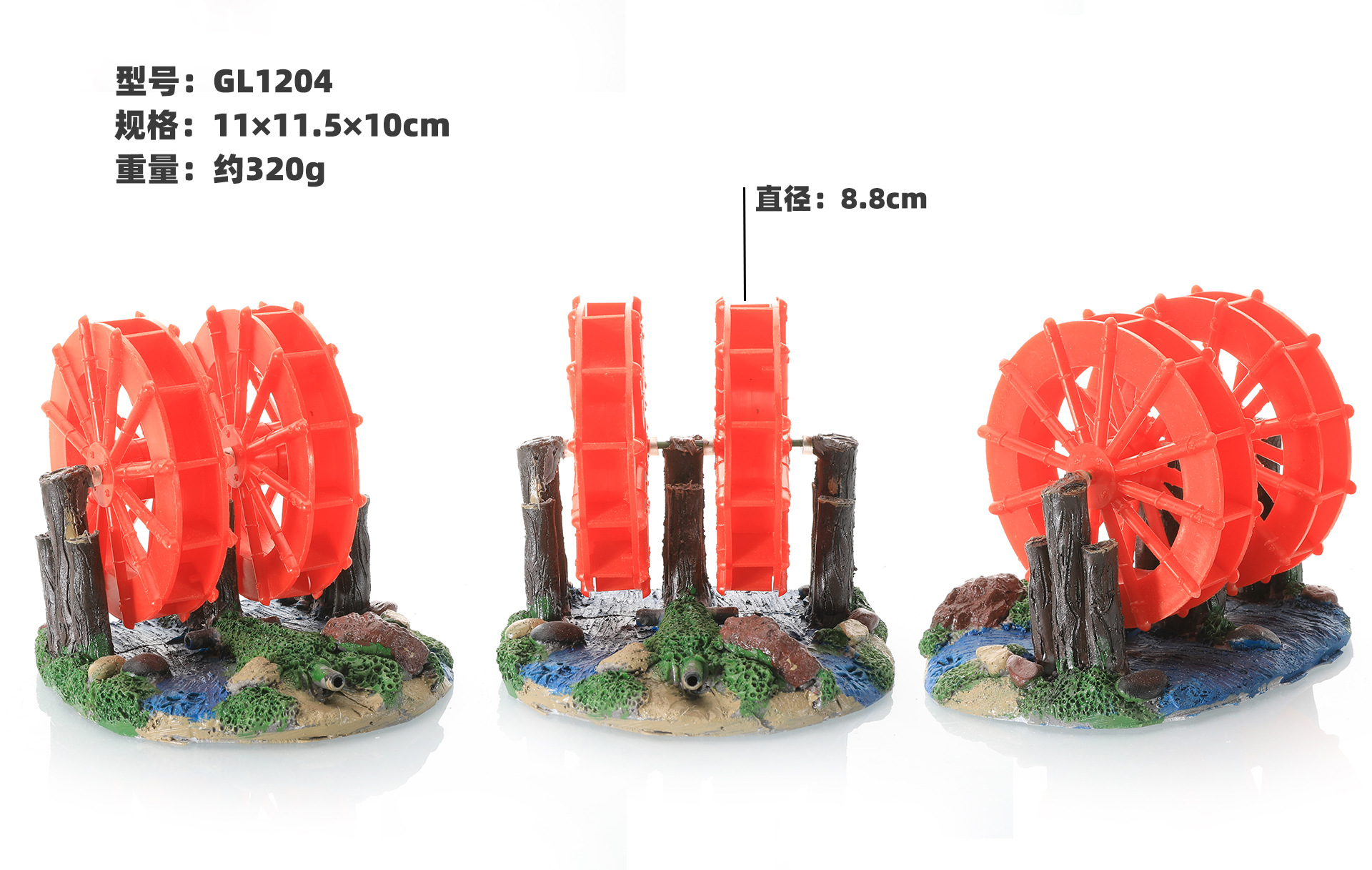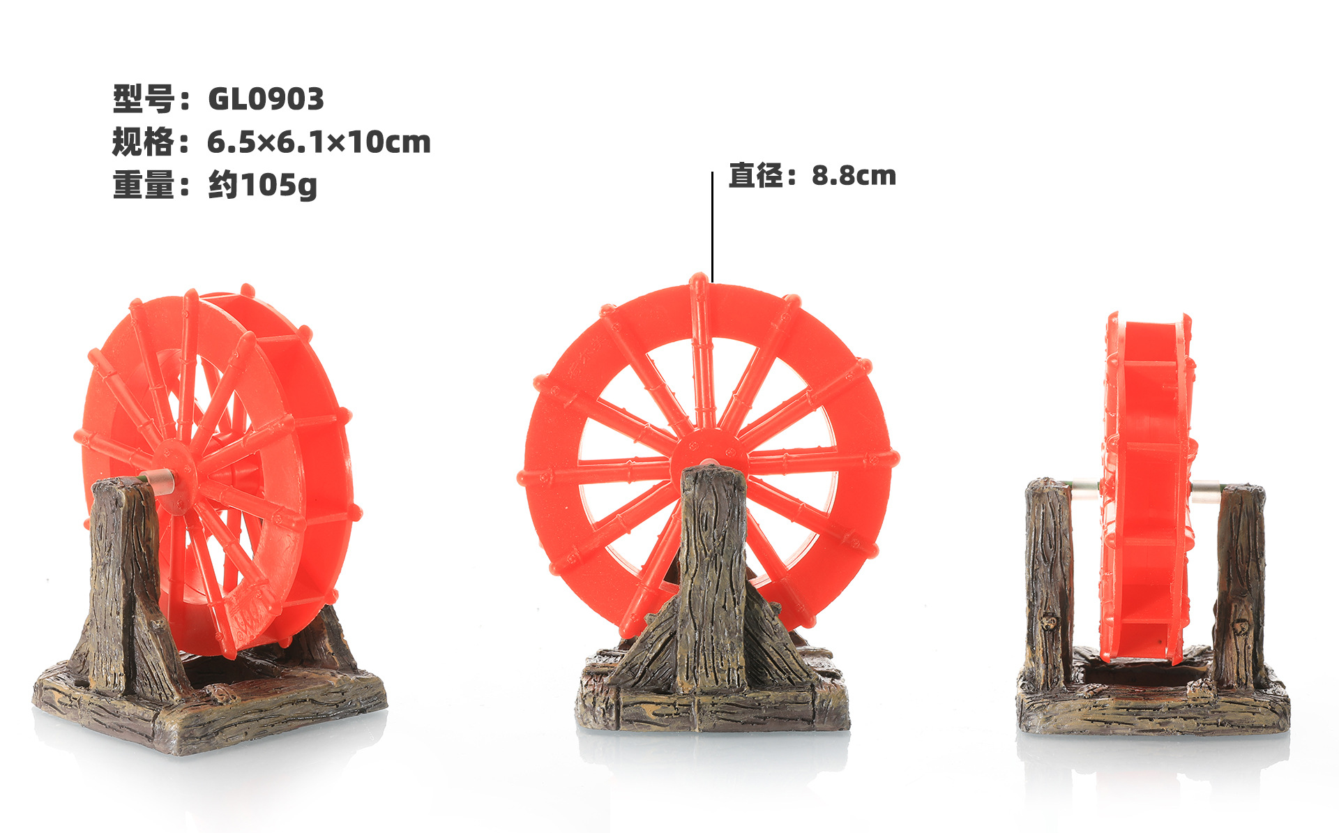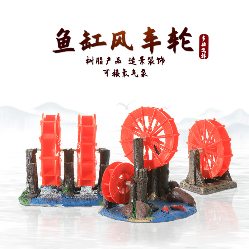 Decoración de pecera, rueda de viento, paisajismo, bomba de oxígeno, acuario de resina, decoración de resina oxigenada