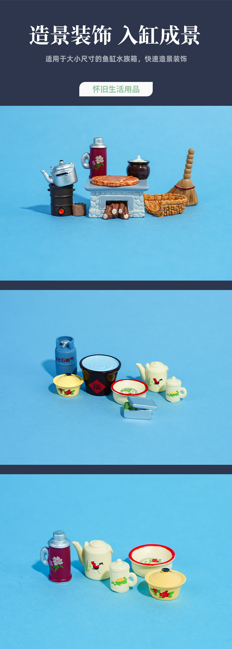 Micro paisaje retro nostálgico necesidades diarias adornos tanque de agua tanque de gas estufa de carbón calentador de agua accesorios para el hogar