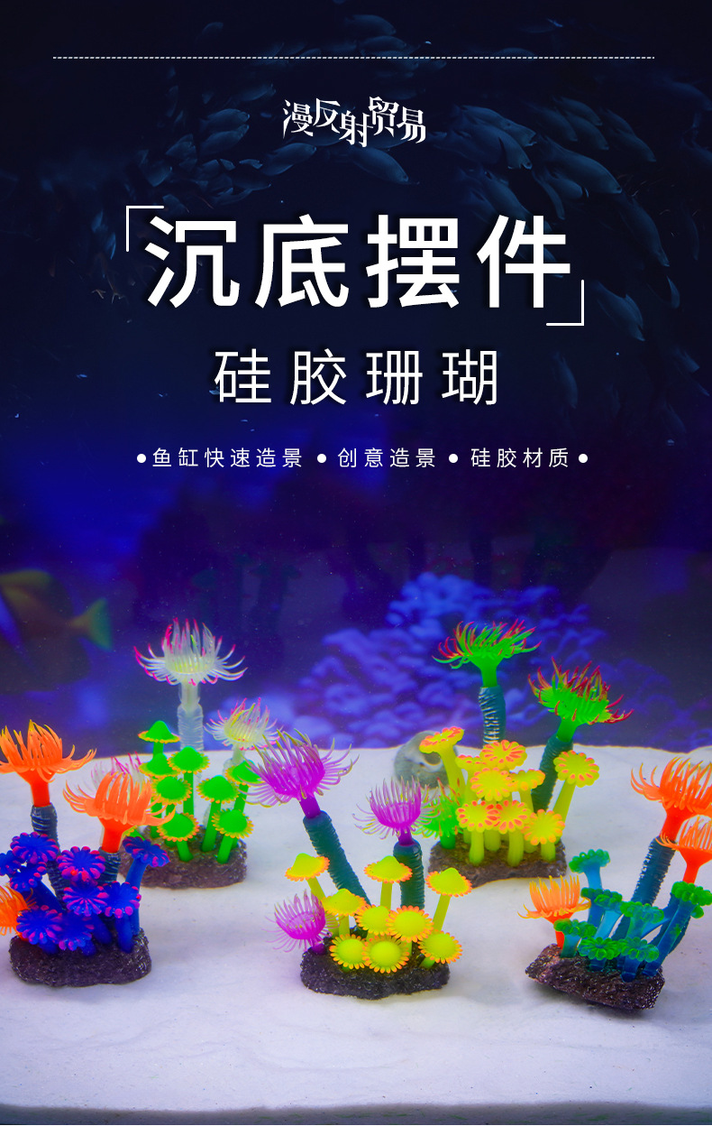 Luminoso decoración coral paisaje decoración pecera acuario paisajismo artesanía simulación coral de silicona decoración del acuario