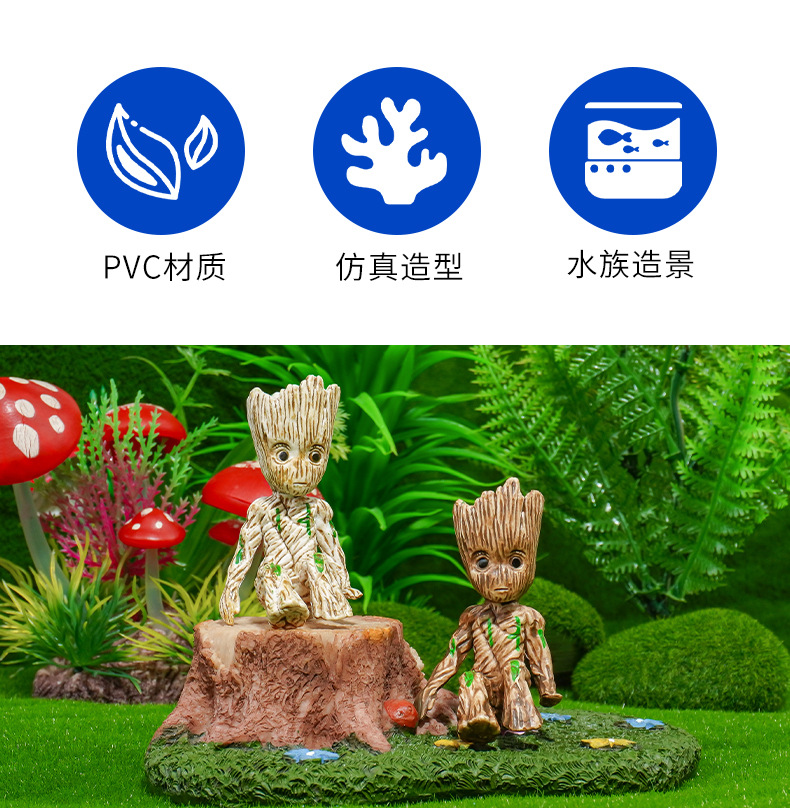 PVC Groot Tree Man en maceta, decoración de madera brasileña, acuario, peceras, artesanías, micro-paisaje, adornos de fondo hundido, berserk