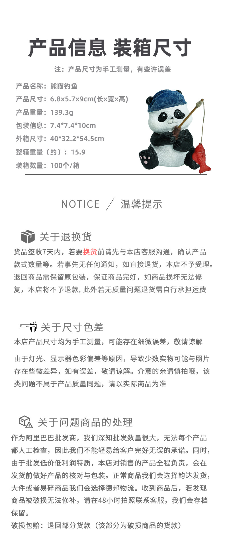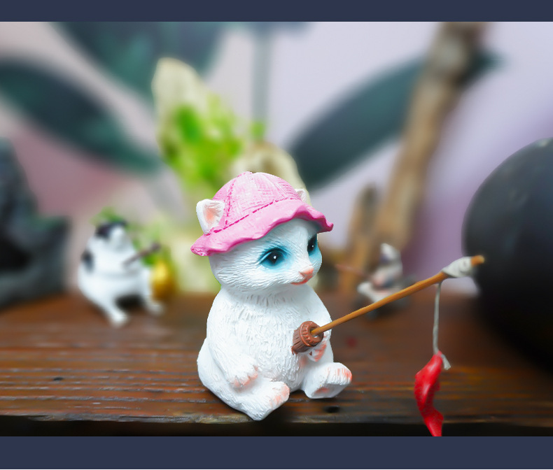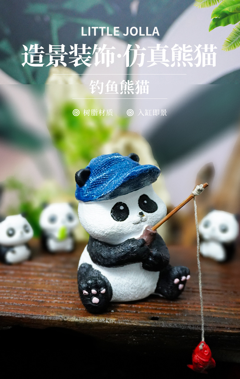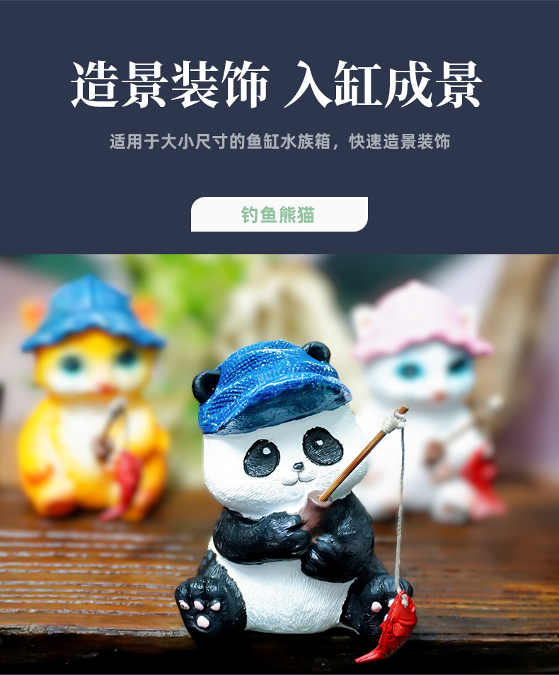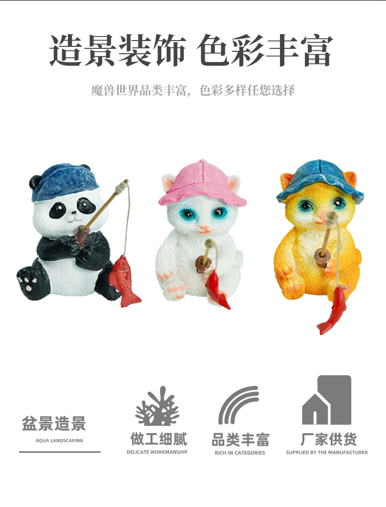 Serie de gatos de pesca transfronteriza Pesca de panda Una variedad de adornos Estanque de peces Decoración de rocalla Estilo explosivo Escenografía de pecera antigua