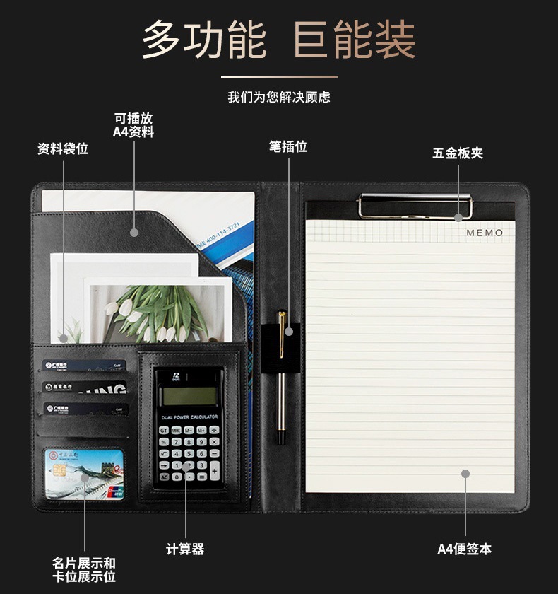 Carpeta Carpeta de cuero de múltiples carpetas Carpeta de contrato de negociación Carpeta de contrato