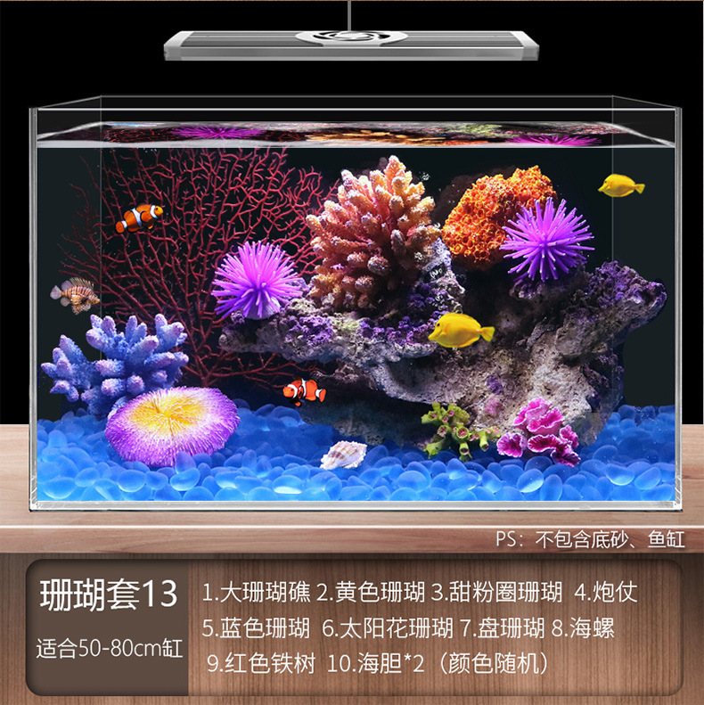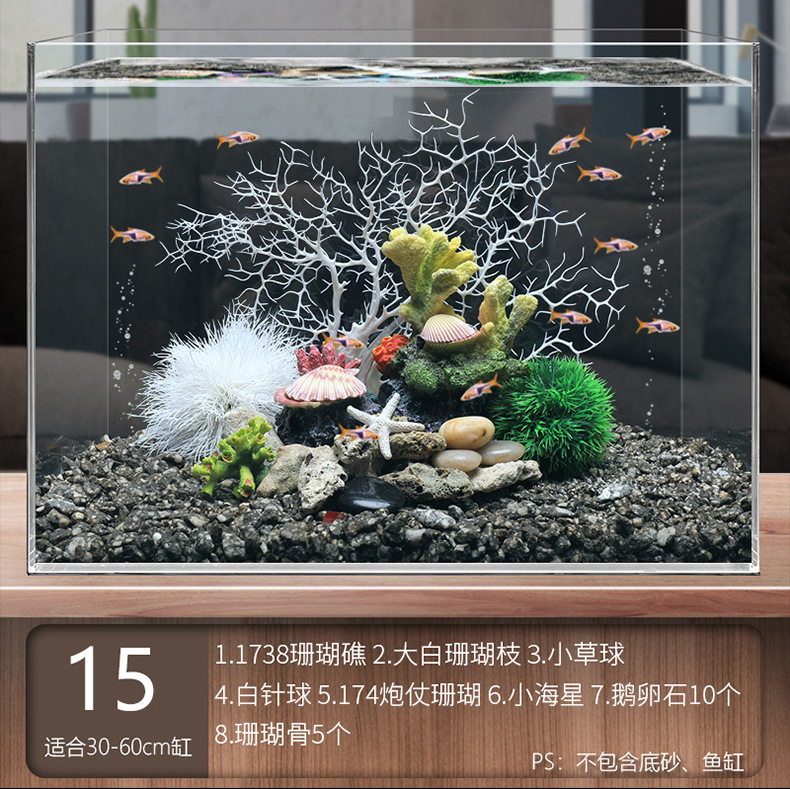 Juego completo de paisajismo de pecera, juego de decoración de rocalla de hierba acuática de simulación, juego de adorno de coral de arena de fondo de acuario