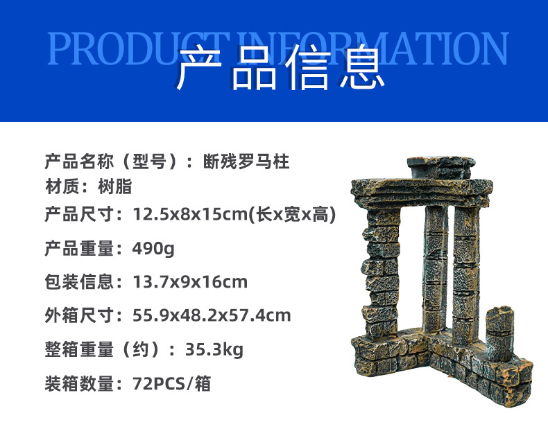 Simulación de columna romana rota, acuario de paisajismo, decoración de acuarios, peces y camarones para evitar la creatividad, venta caliente de péndulo transfronterizo
