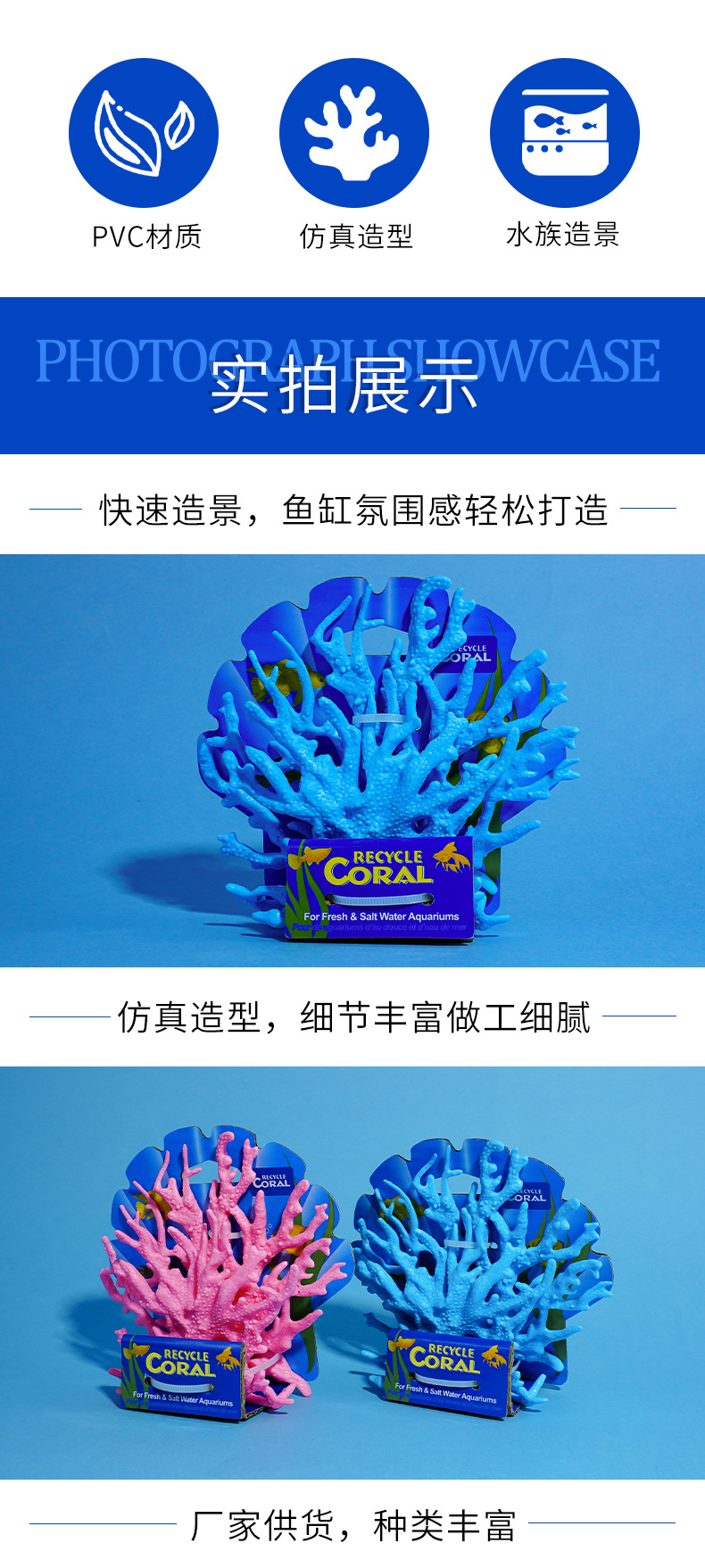 Coral transfronterizo dedicado al paisajismo de acuarios, acuario de simulación de acuario, acuario, peces falsos, tanque de agua de mar, coral blando, secado duro