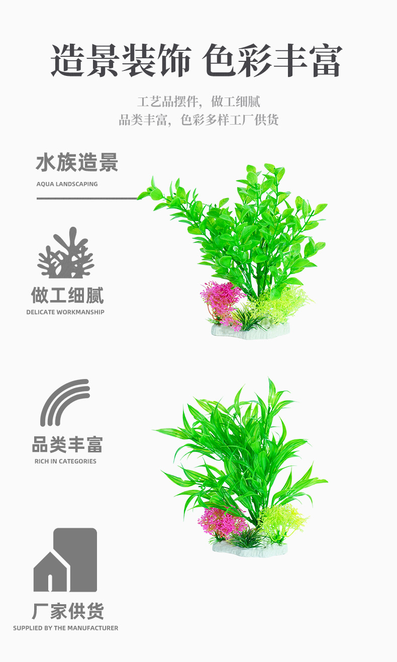 Decoración de mesa de comedor, decoración, agua falsa, césped, pecera, paisajismo, flores de plástico, acuario, fábrica de origen de pajar de simulación