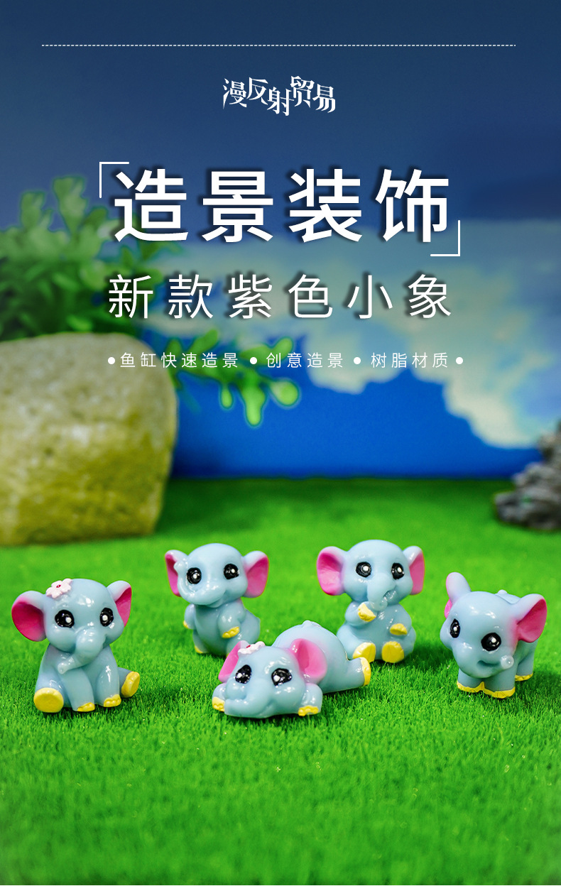 Lindo elefante resina pequeño animal adorno micro paisaje jardinería decoración de paisajismo de bricolaje nuevo mini elefante púrpura