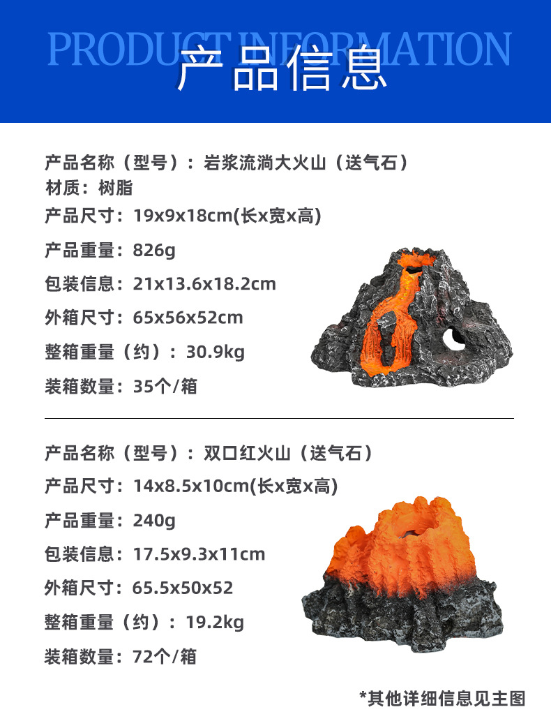 El volcán de simulación se puede instalar con una bomba de oxígeno, artesanías para el hogar, adornos, peceras, decoración, paisajismo, resina, rocalla, acuario