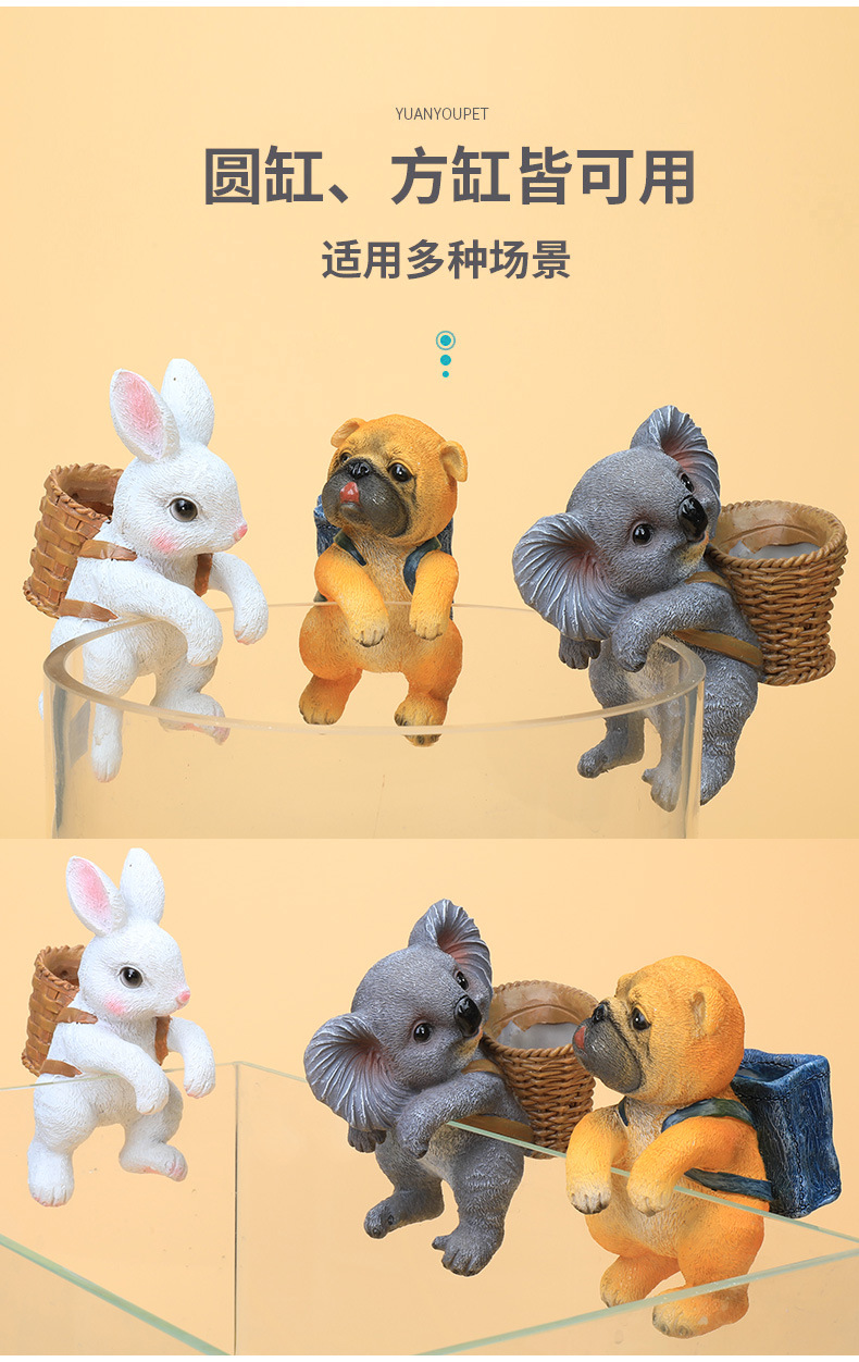 Macetas de jardín, peceras, mochilas, decoraciones de conejos y koalas, mochilas creativas con forma de pecera, adornos para perros, macetas verdes.