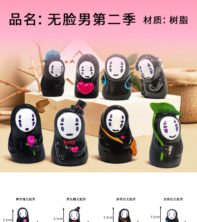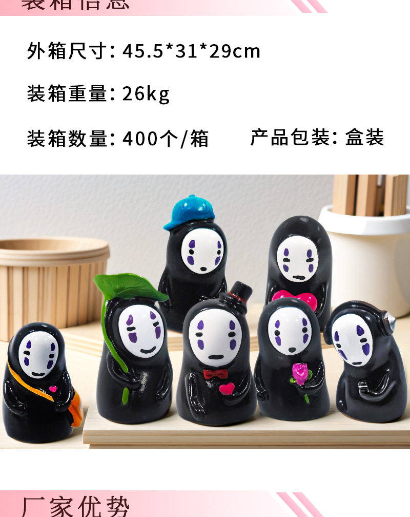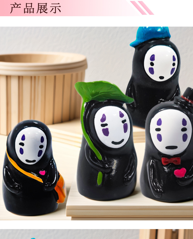 Artículos de comestibles japoneses Hayao Miyazaki lindo hombre sin rostro muebles para el hogar decoración de automóviles sala de estar decoración resina artesanías al por mayor