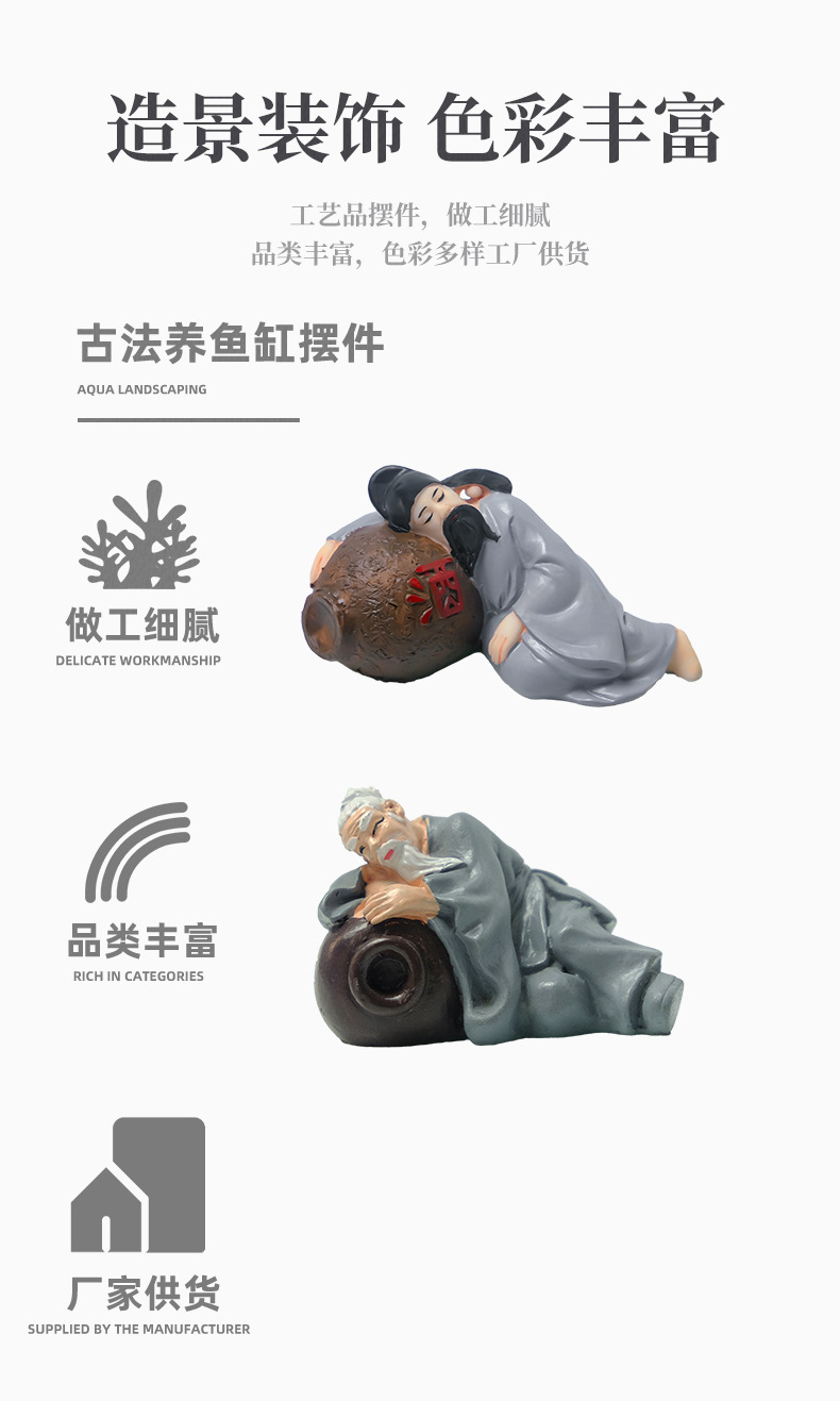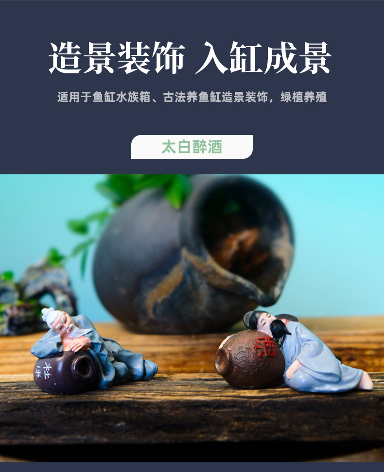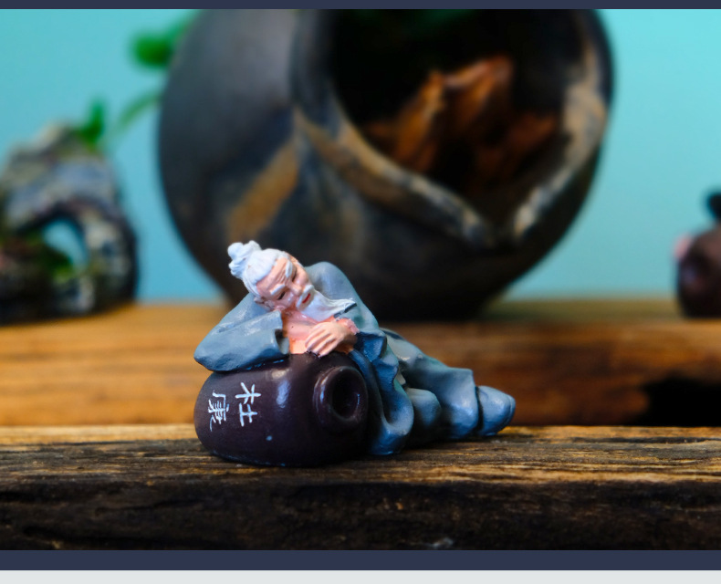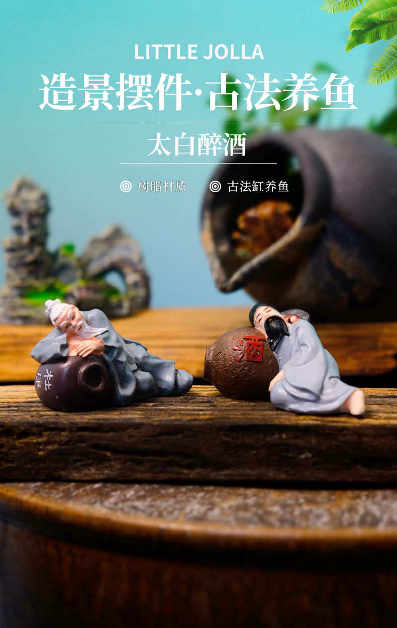 Nuevo tanque de método antiguo, paisaje de agua y tierra, piscicultura, musgo, adornos de figuras, micro paisaje, macetas de carne, accesorios de paisajismo, borracho