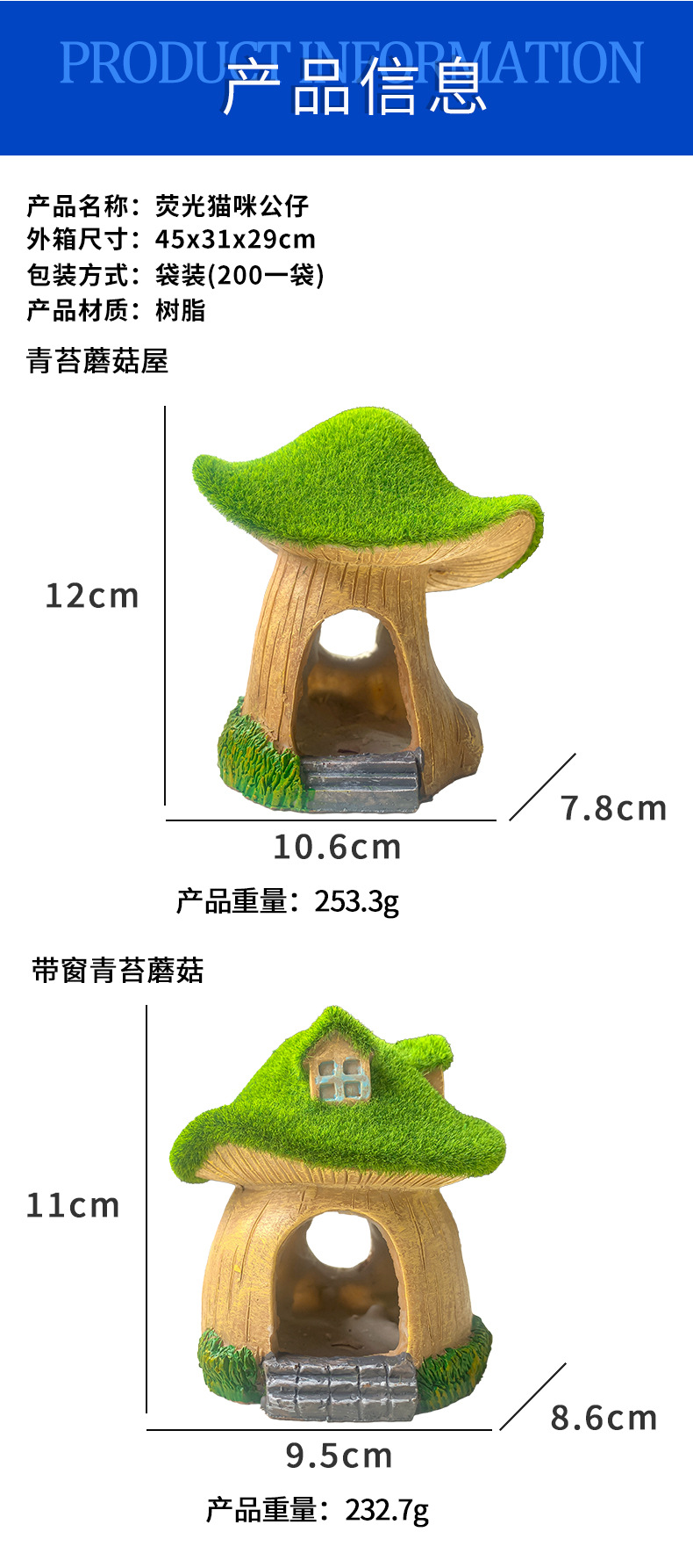 | Especificaciones | Musgo Casa de setas con ventana,Musgo Mushroom House |