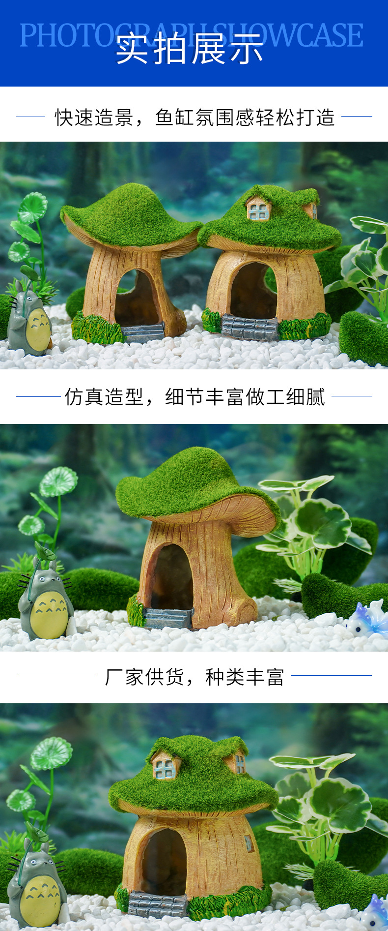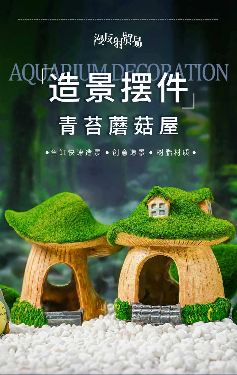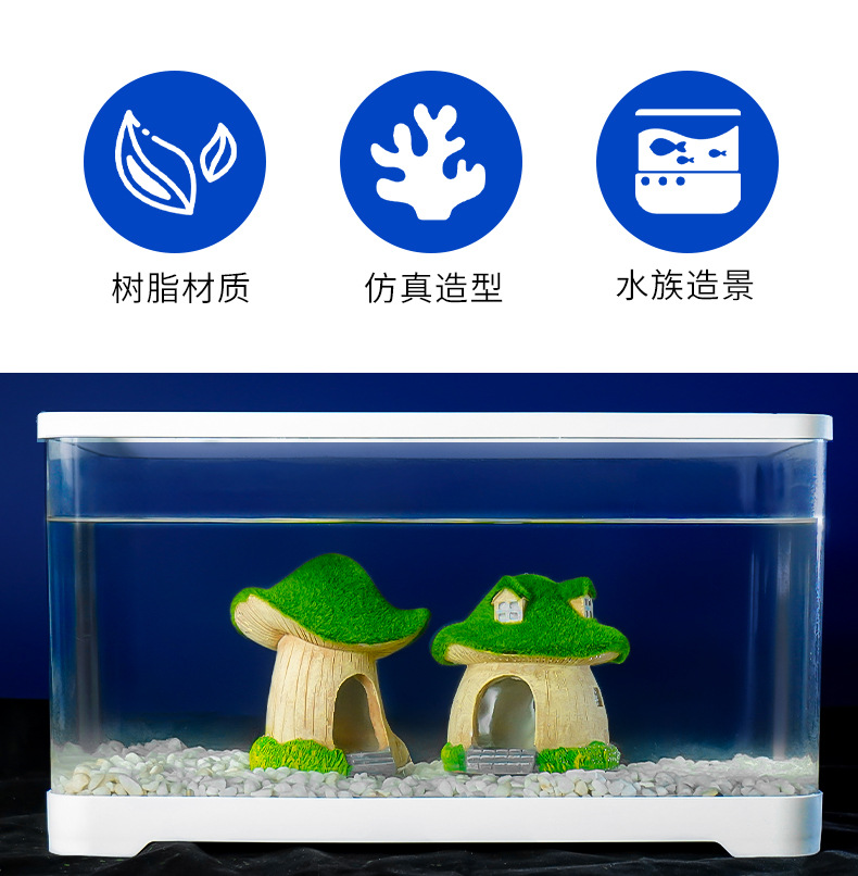Artesanía de resina peces y camarones escondite casa pecera paisaje decoración musgo seta casa escondite piezas de la casa decoración del acuario