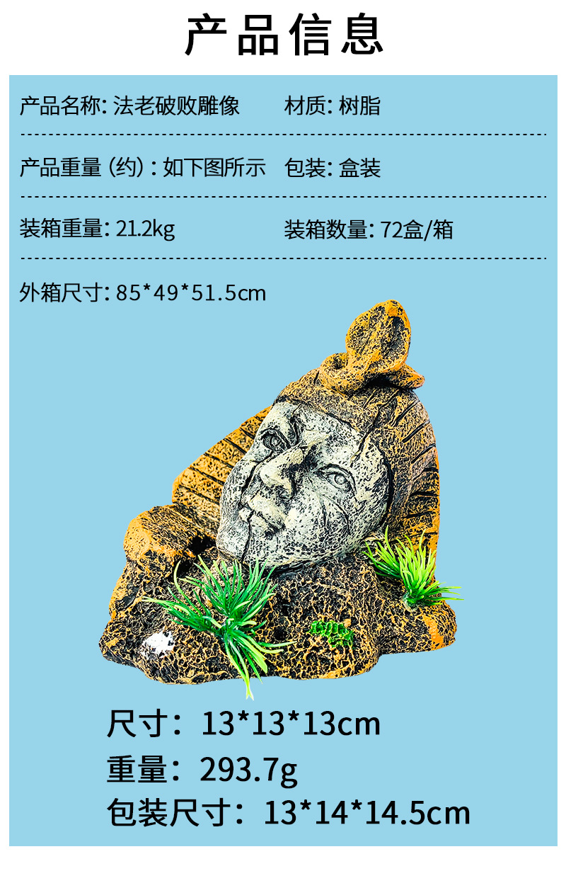 Artículo Popular Transfronterizo: Estatua de Faraón de Resina, Decoración para Acuarios, Paisajismo para Peceras, Plantas Acuáticas, Casa de Escondite Egipcia.