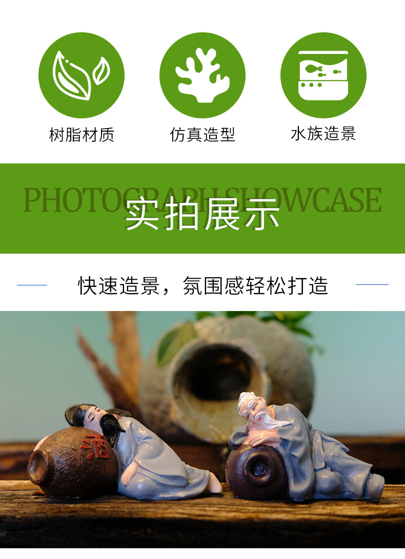Pecera antigua al por mayor, piscicultura, musgo, micro paisajes, adornos de personajes, macetas carnosas, accesorios de paisajismo, anciano borracho