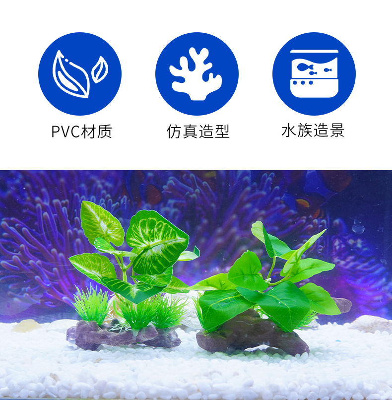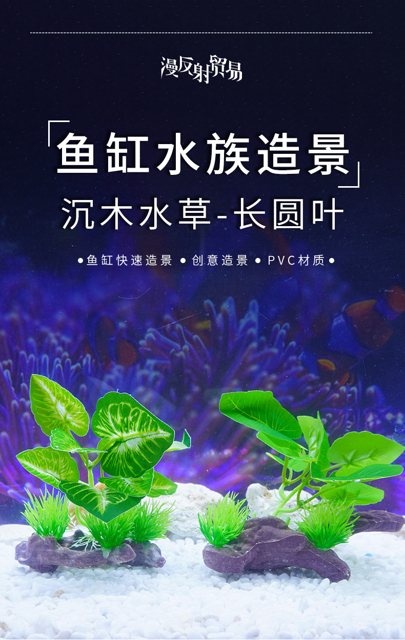 Suministro de nuevos adornos de simulación transfronterizos, decoración de plantas verdes de acuario, hojas de pez betta, madera sumergidas, plantas de paisajismo de peceras