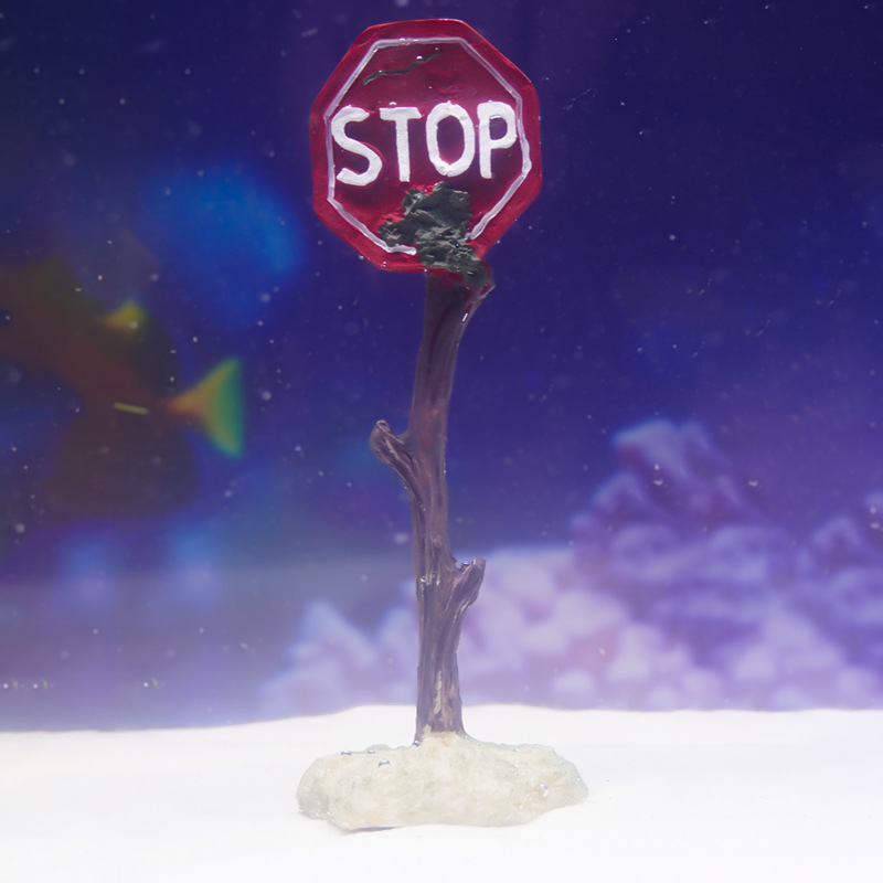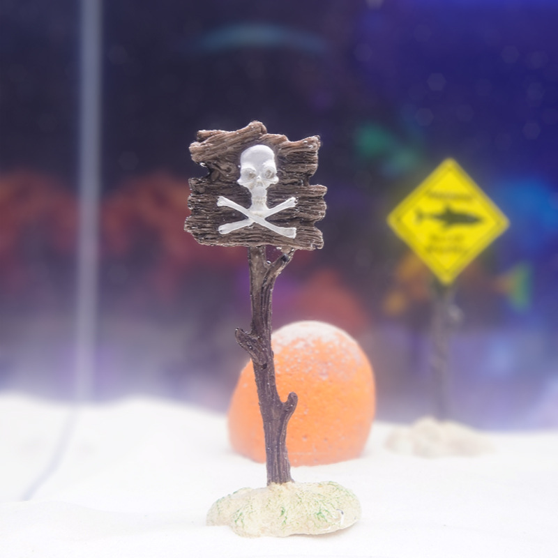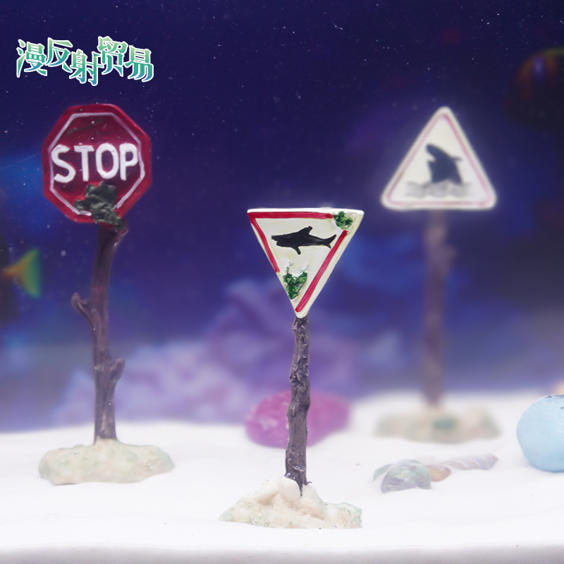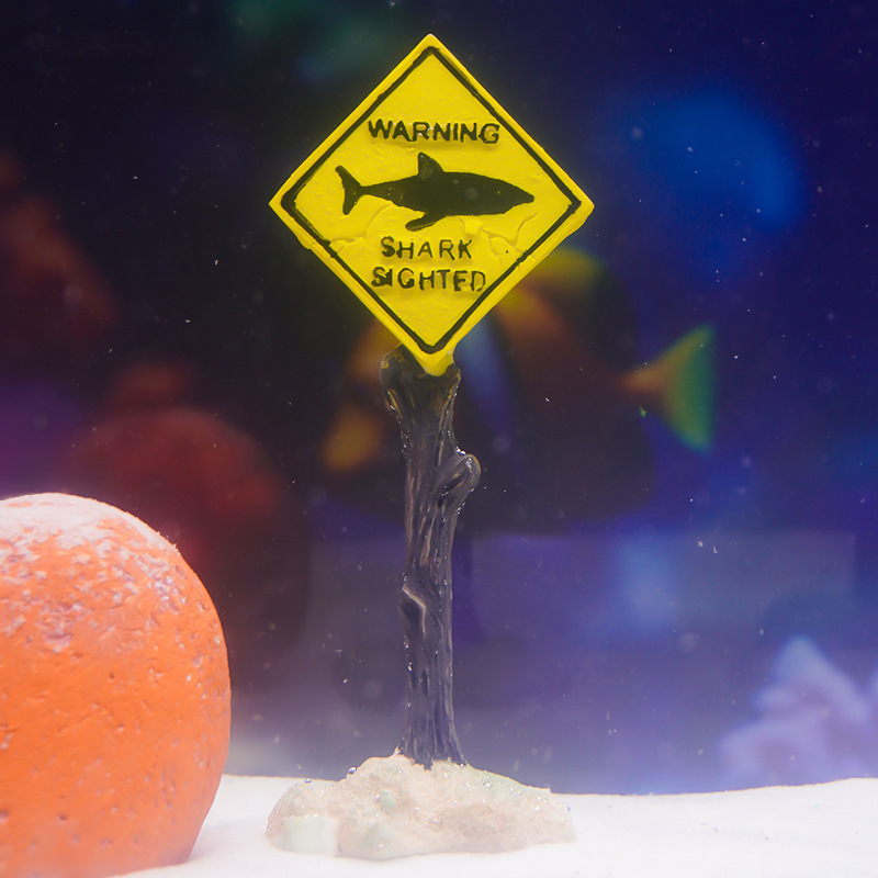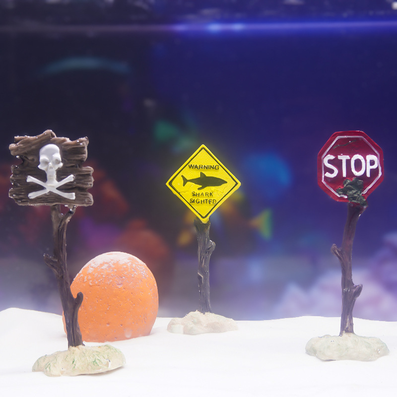 Decoración de paisajismo de peceras, decoración de resina, pequeños adornos, peces y camarones, evitando agujeros en la casa, simulación de letreros de tiburones, letreros de advertencia, estilos explosivos
