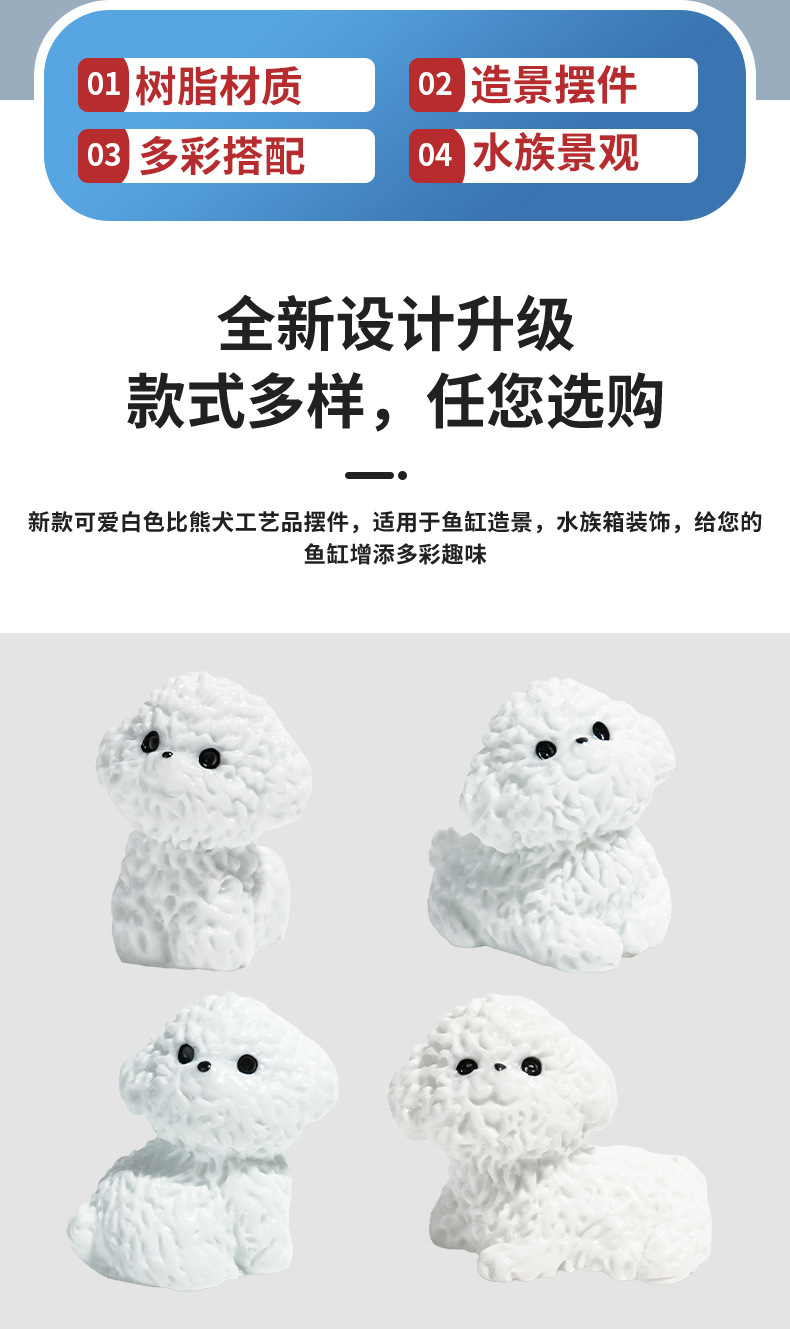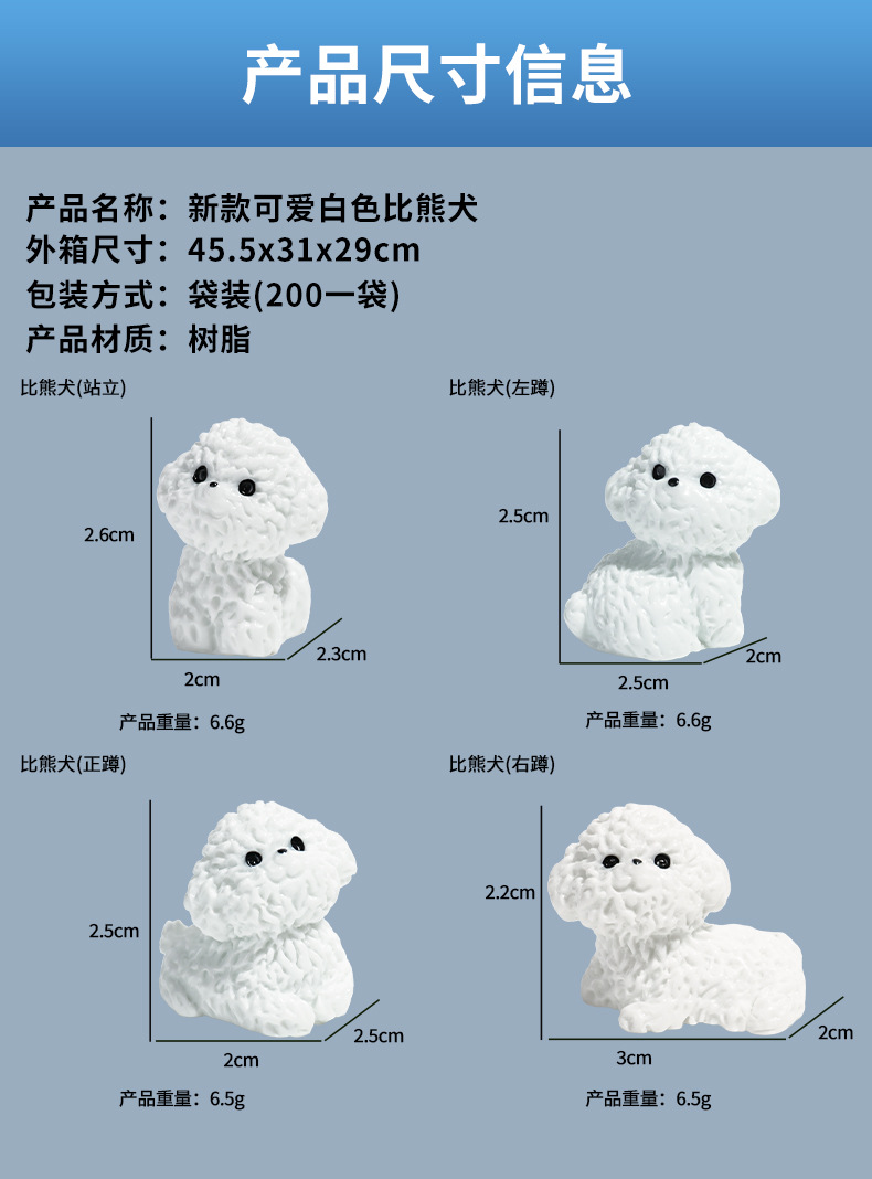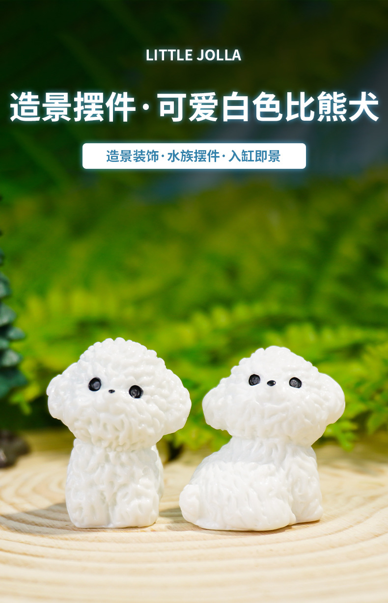 Lindo bichon blanco micro-paisaje en maceta nuevo paisaje pequeño adornos decoración de la consola central del coche accesorios de bricolaje
