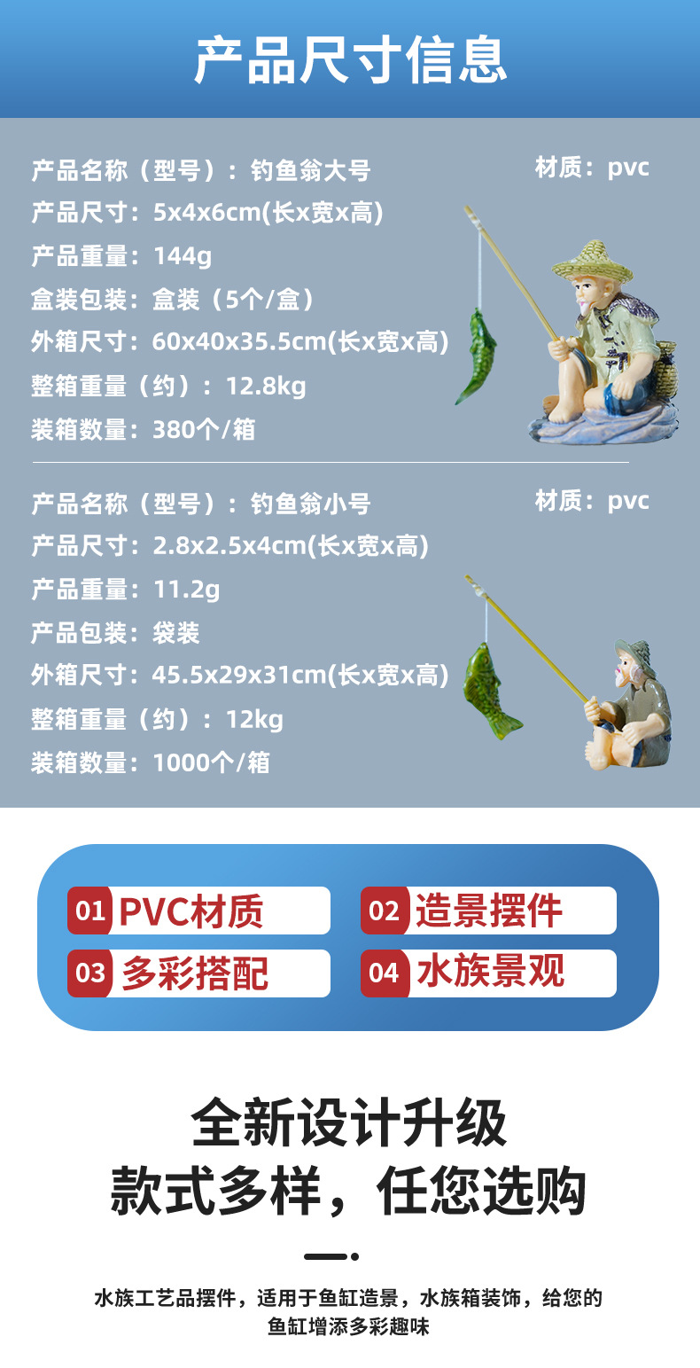 | Especificación | Pesca de pescador (grande),Pesca de pescador (pequeña),Viejo pescando,Pequeño cubo de renacuajo |
