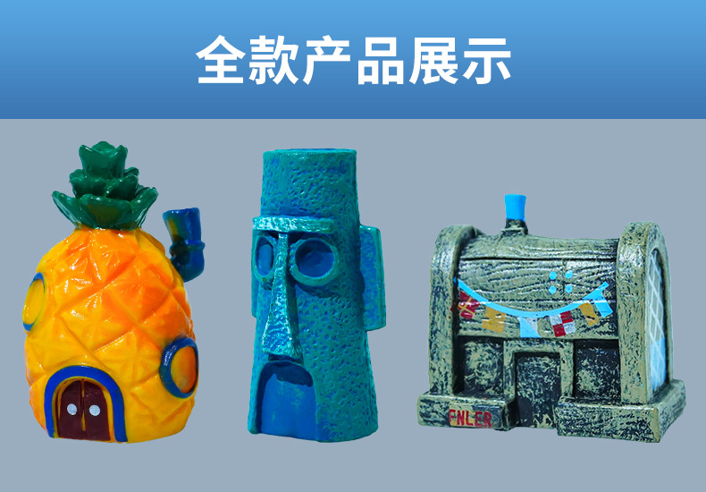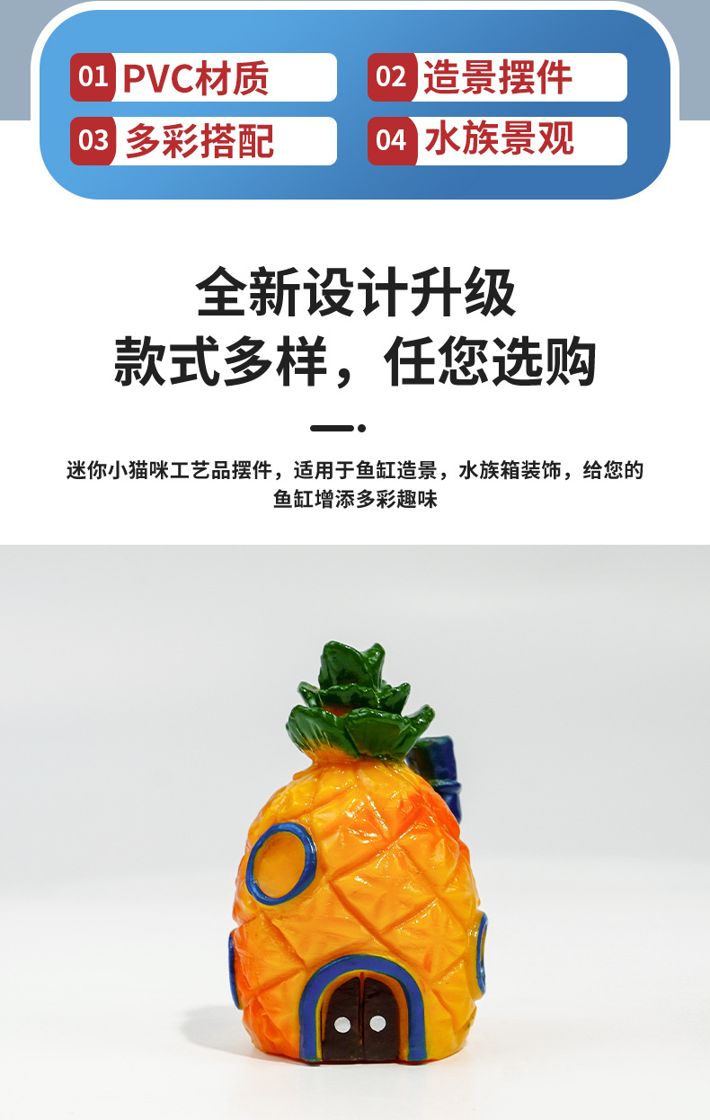 Venta caliente pecera acuario adorno sumergido dibujos animados mini casa de piña PVC no se rompe agua pescado y camarones tanque de refugio