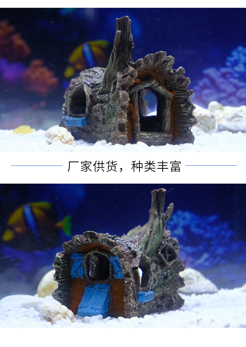 Simulación de paisajismo, tanque de cría de submarino, suministros de acuario, pecera, peces pequeños, casa de refugio, decoración de resina, decoración
