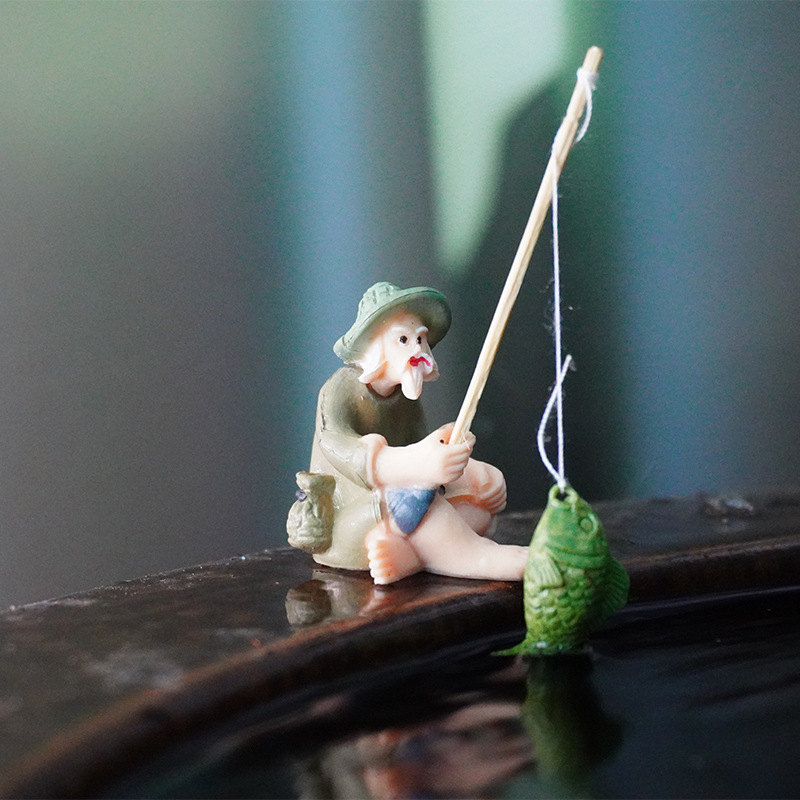 Adorno de Jardinería para Pecera Pequeña, Diseño de Anciano Pescador, Decoración de Jiang Taigong, Maceta, Adorno Creativo de Pescador