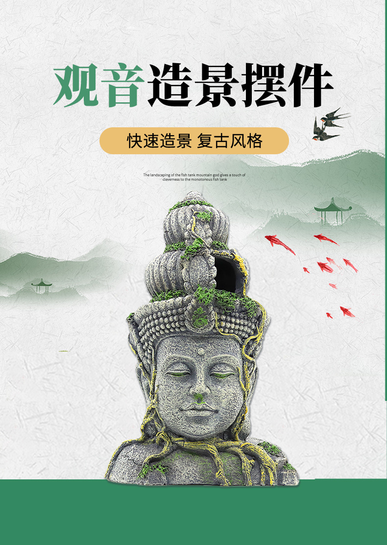 Crawler caja acuario decoración ornamental Fish Tank paisaje resina artesanía simulación Bodhisattva Buda templo