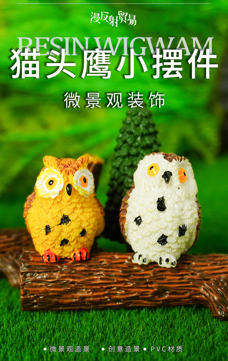 Regalo de búho resina de búho con patas expuestas Adornos decorativos de búho musgo micro paisaje plantas verdes creativas