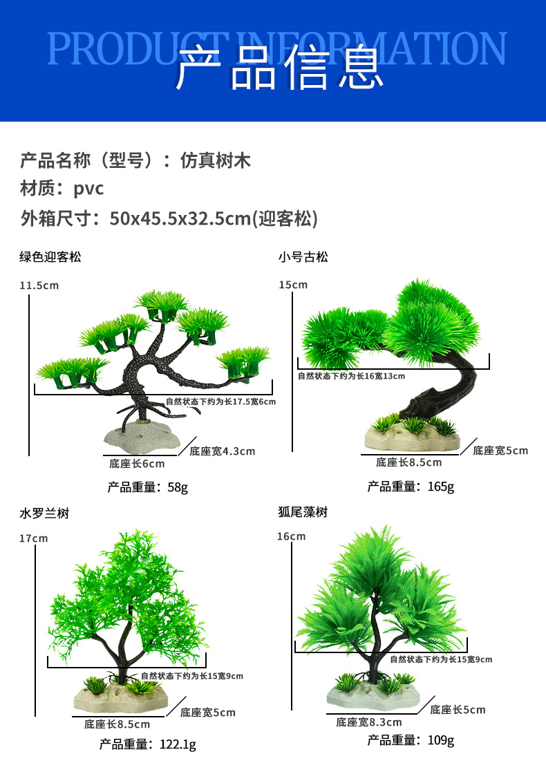 | Especificaciones | Pino de bienvenida verde,Pequeño pino antiguo,Árbol de cola de zorro,Agua Roland árbol |