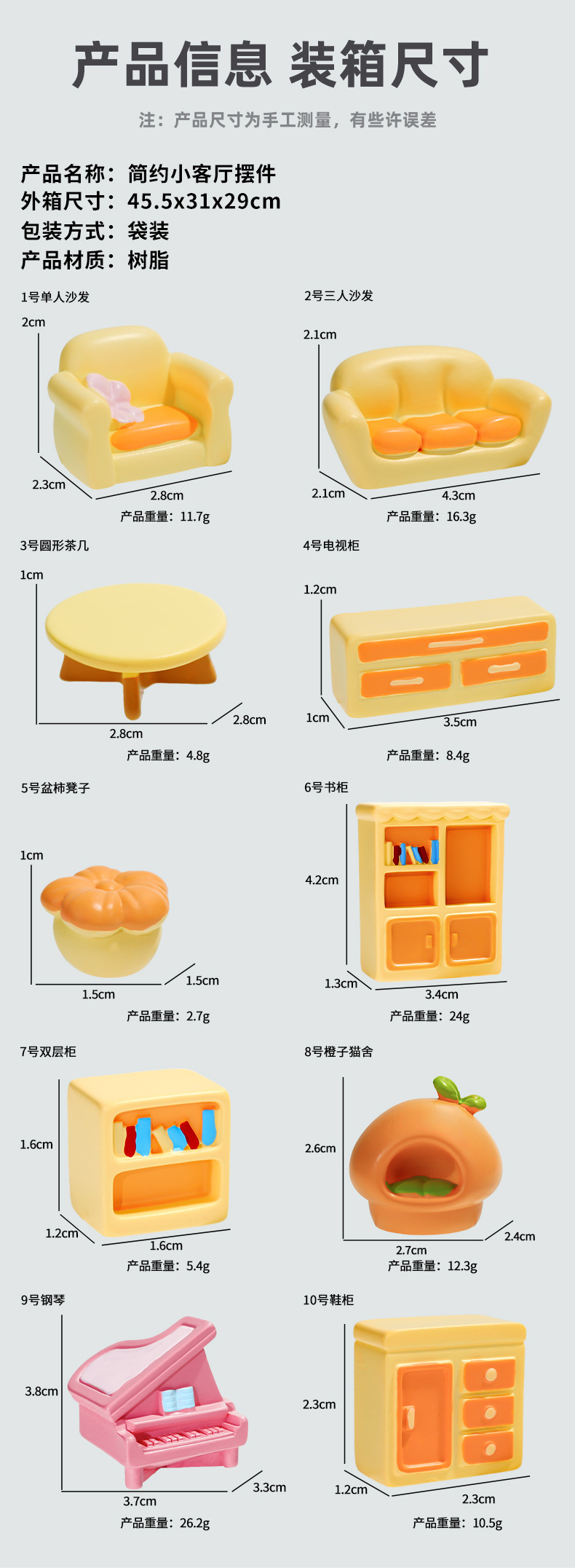 | Colores | banco de madera,Sofá individual No. 1,Sofá triple n ° 2,Mesa de centro redonda No. 3,Mueble de TV No. 4,Taburete de caqui n. ° 5,Librería No. 6,Gabinete doble No. 7,Cata naranja No. 8,Piano No. 9,Zapatero No. 10 |