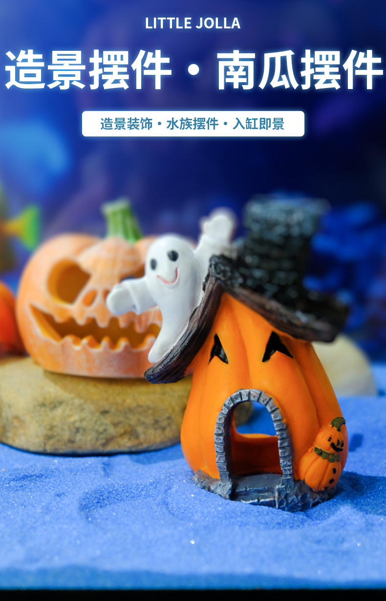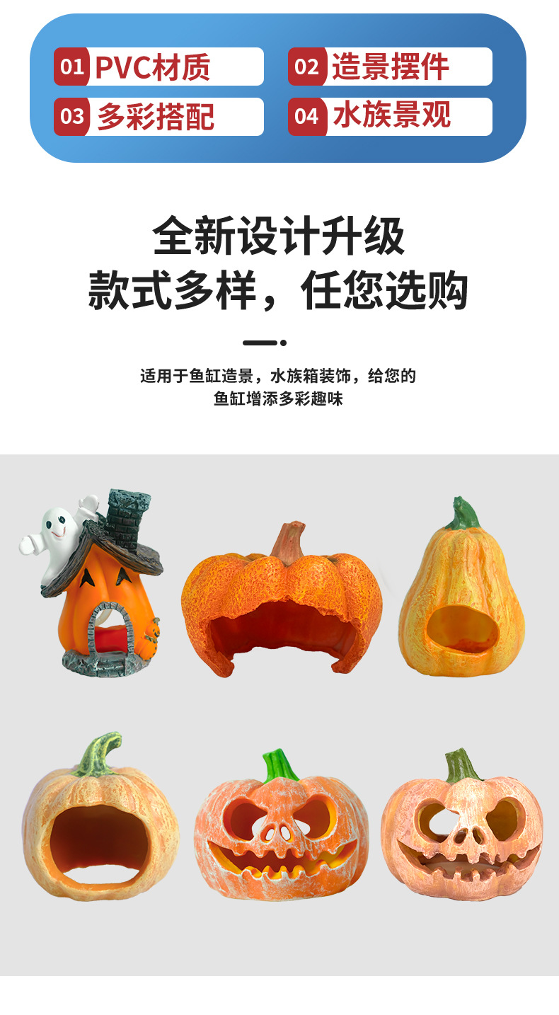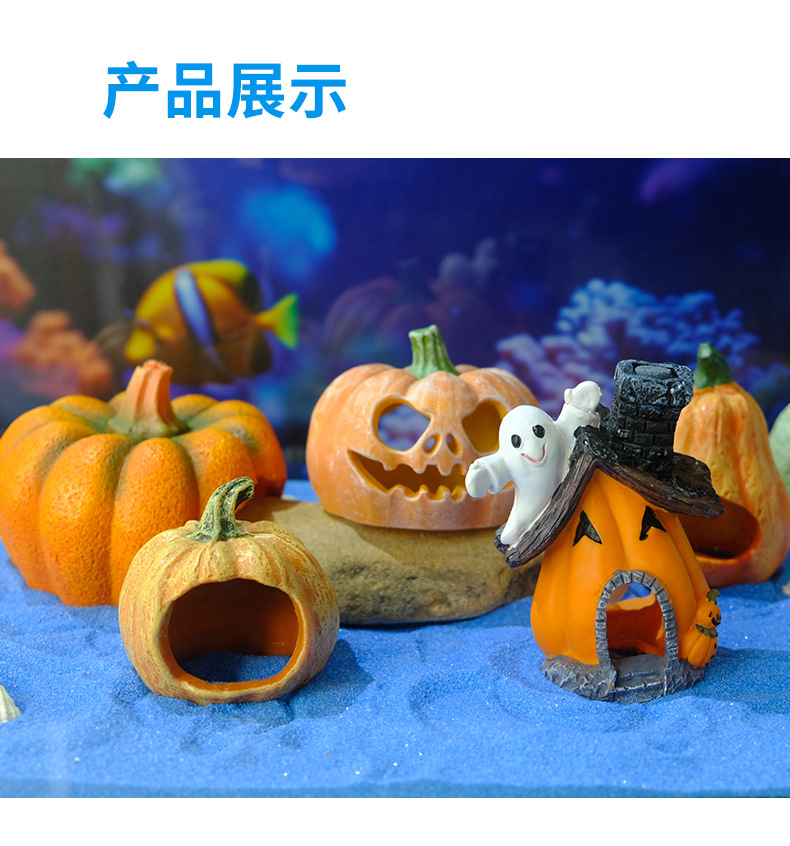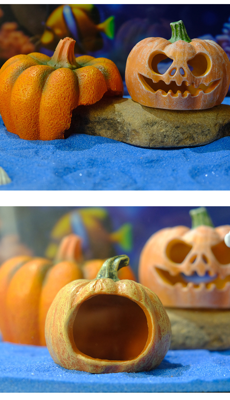 Venta caliente pecera acuario decoración de resina escondida decoración de la casa calabaza sumergida paisaje de Halloween olla de reproducción desove